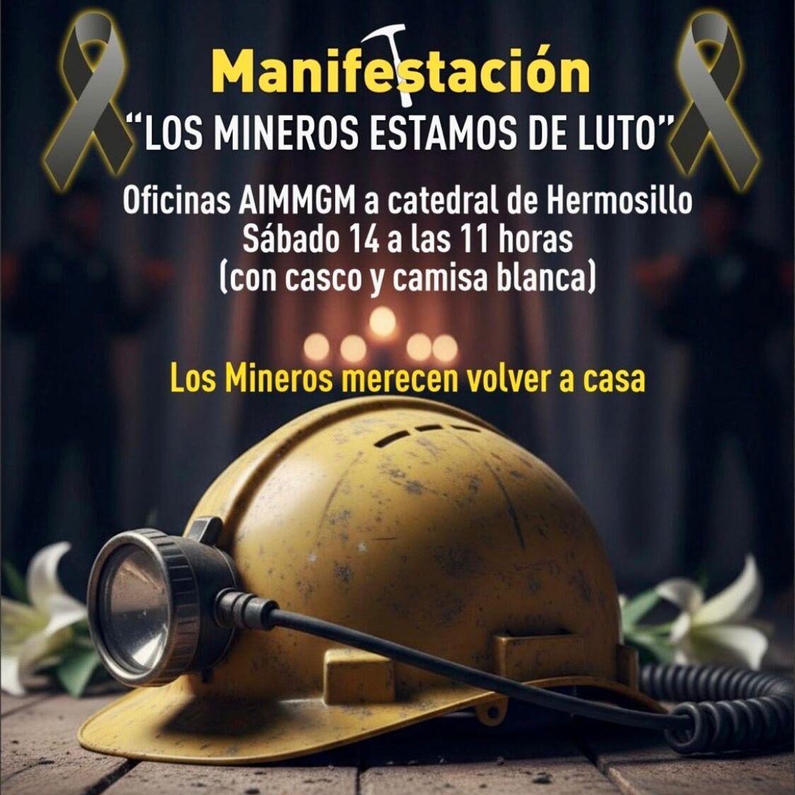 A través de un comunicado en redes sociales, los mineros sonorenses hicieron un llamado a organismos, asociaciones, empresas mineras, sindicatos, proveedores de la minería y a la sociedad en general a participar en la movilización “Los mineros estamos de luto”.