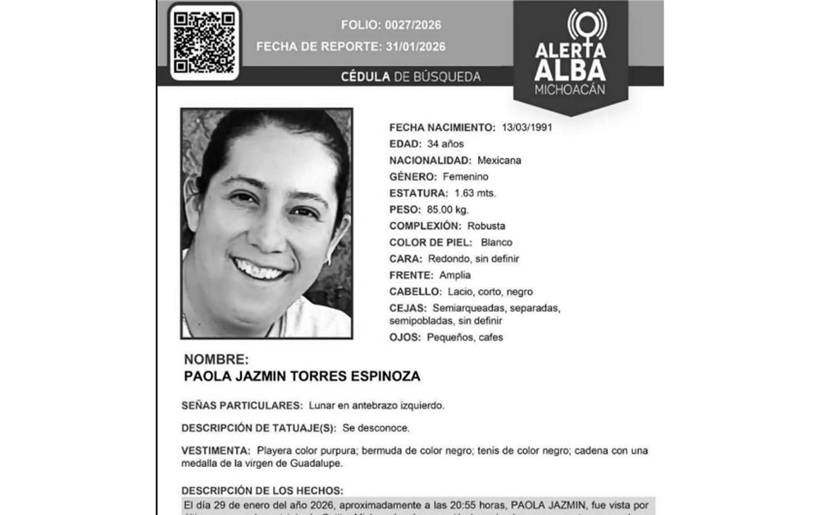 Con los primeros análisis, las autoridades confirmaron que la víctima era Paola Jazmín, a quien se reportó como desaparecida desde la noche del 29 de enero, cuando fue vista por última vez alrededor de las ocho de la noche en Cotija.