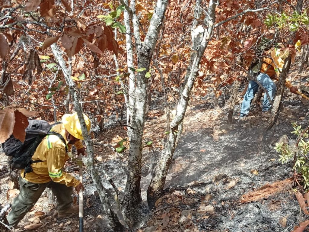 En tanto que con apoyo de brigadistas comunitarios se controló el fuego reportado en el paraje Portillo de las Tijeras, de San Ildefonso Sola, en la Sierra Sur.