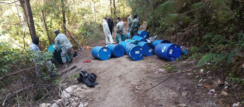 Como parte de las acciones del Plan Paricutín, elementos de las secretarías de la Defensa Nacional (Sedena) y de Seguridad y Protección Ciudadana (SSPC) localizaron y destruyeron un laboratorio clandestino para la elaboración de drogas, ubicado en la zona serrana del municipio de Madero, en Michoacán.