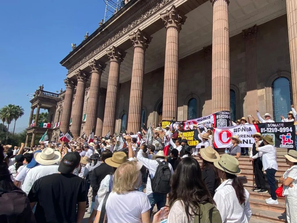 En un llamado conjunto, cientos de asistentes a la protesta en Monterrey focalizaron sus demandas en tres ejes: la destitución de la presidenta Claudia Sheinbaum, el rechazo al partido Morena y la reivindicación de Carlos Manzo, presidente municipal de Uruapan, con una pregunta desafiante: «¿quieres esto para Nuevo León?”.