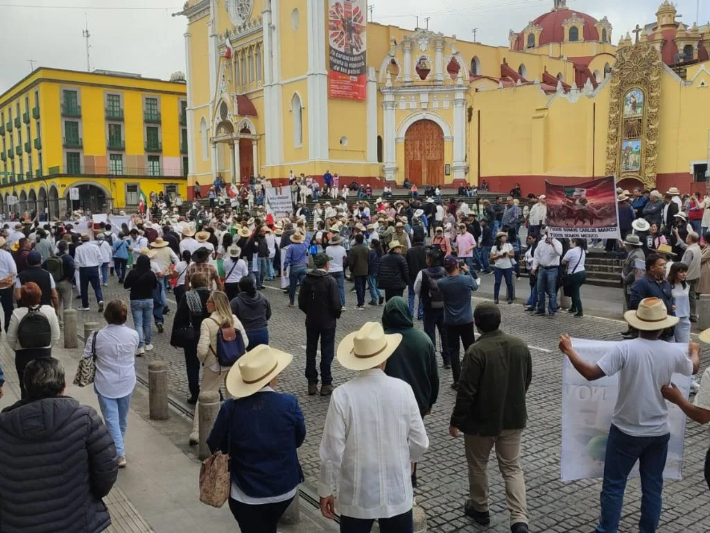 Exigieron también poner alto a la inseguridad y garantizar el respeto al Estado de Derecho con pancartas que decían “no es por partidos, es por México”. La jornada concluyó tras un altercado al exterior de la Casa Aguayo, donde se reportó que un grupo de asistentes derribó la valla metálica, lanzó piedras y vandalizó una patrulla de la Policía Estatal.