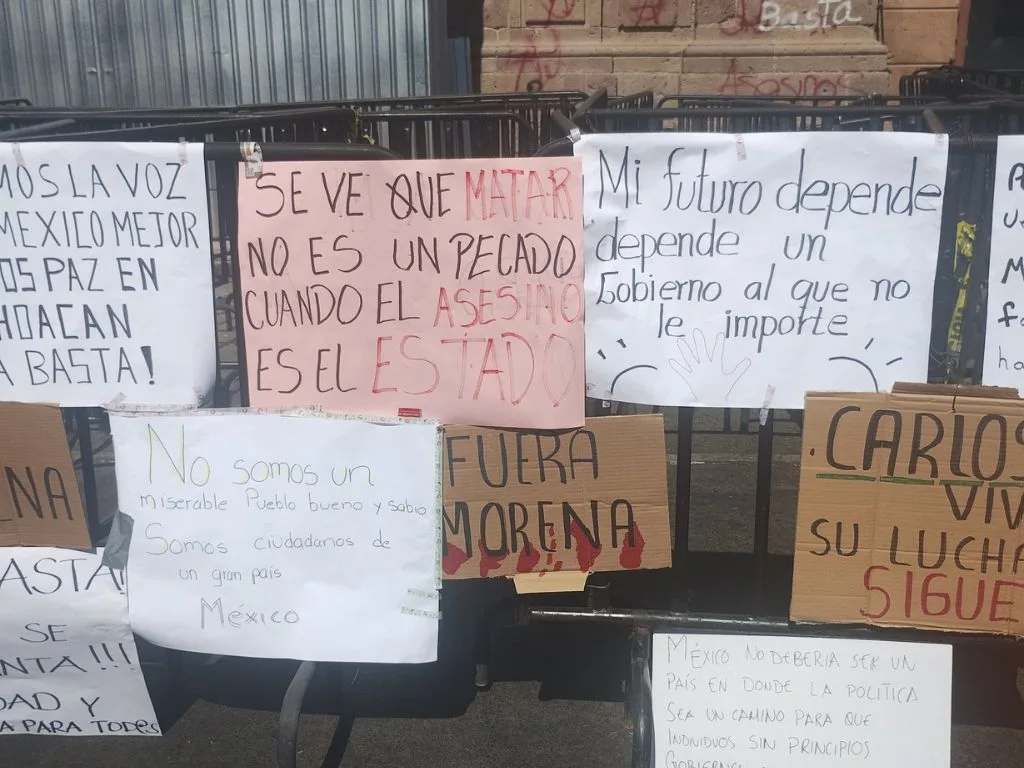 En la capital michoacana, la salida se dio a las 11:00 horas desde el Jardín Morelos, conocido como “el Caballito”. Los participantes se dirigieron hacia el Congreso del Estado con consignas centradas en la exigencia de seguridad y oportunidades. La marcha se presentó como un acto de interpelación directa a las instituciones locales.