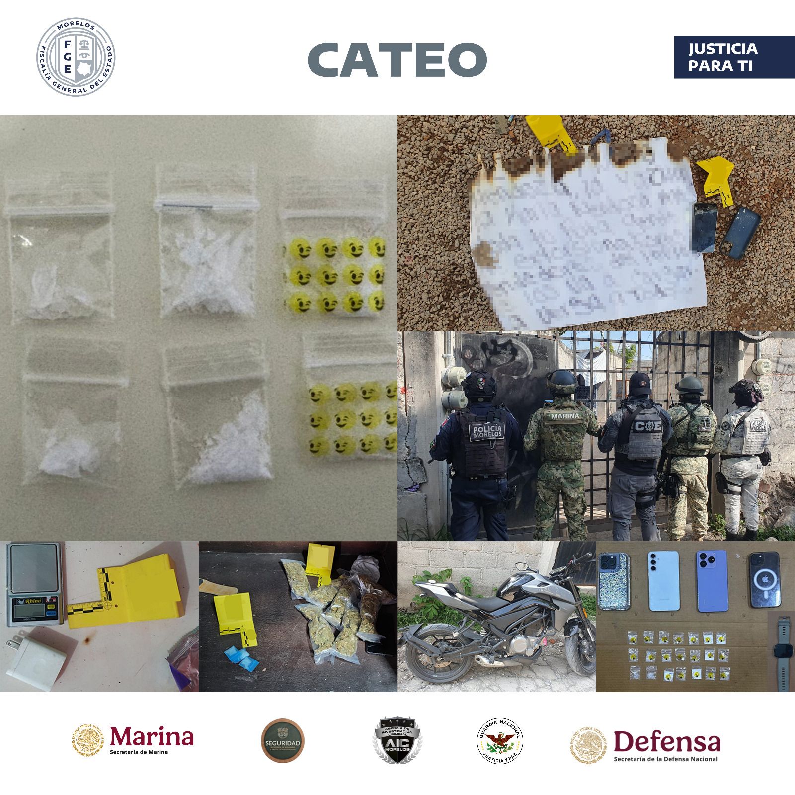 En ambos inmuebles se aseguraron dosis de cristal y marihuana, una báscula gramera, teléfonos celulares, una cartulina con mensaje presuntamente intimidatorio y cuatro motocicletas —una con reporte de robo—, entre otros indicios relacionados con la compraventa de estupefacientes.