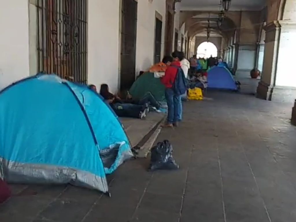 Maestros de la Sección 22 mantienen vivo su plantón en el Zócalo de Oaxaca como parte de su huelga para presionar al gobierno federal. AMEXI/Foto: cortesía