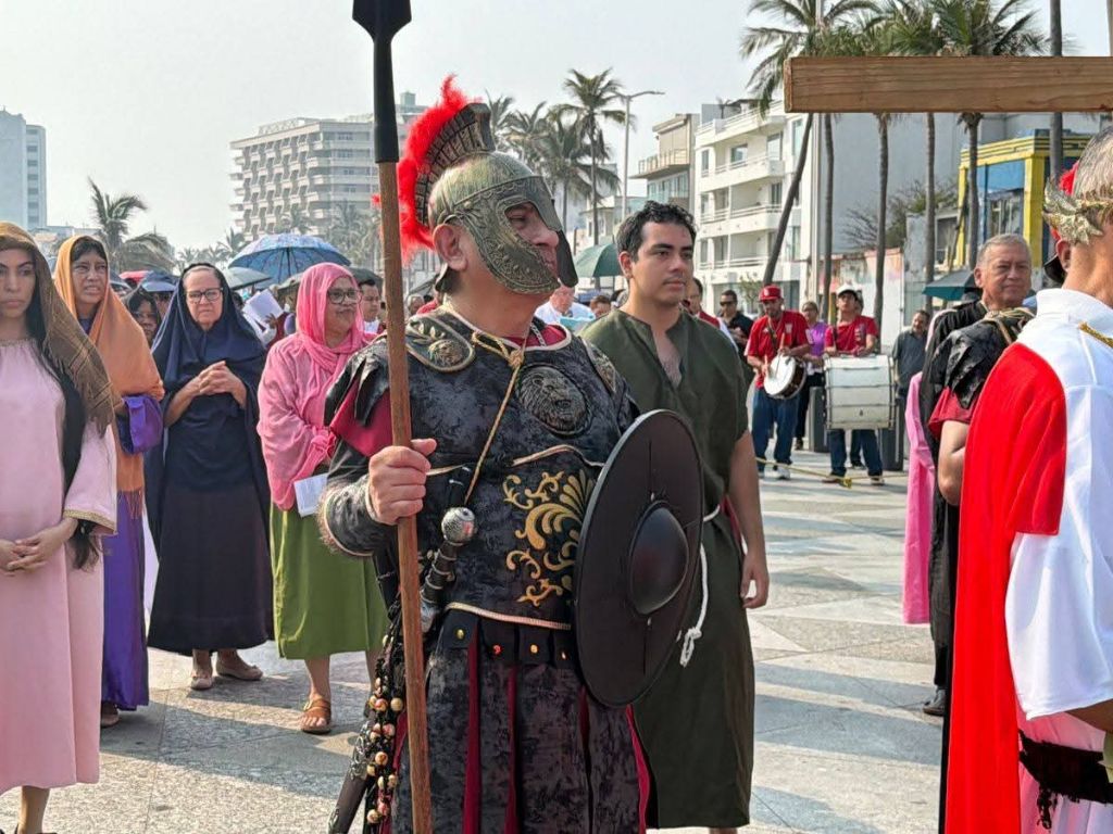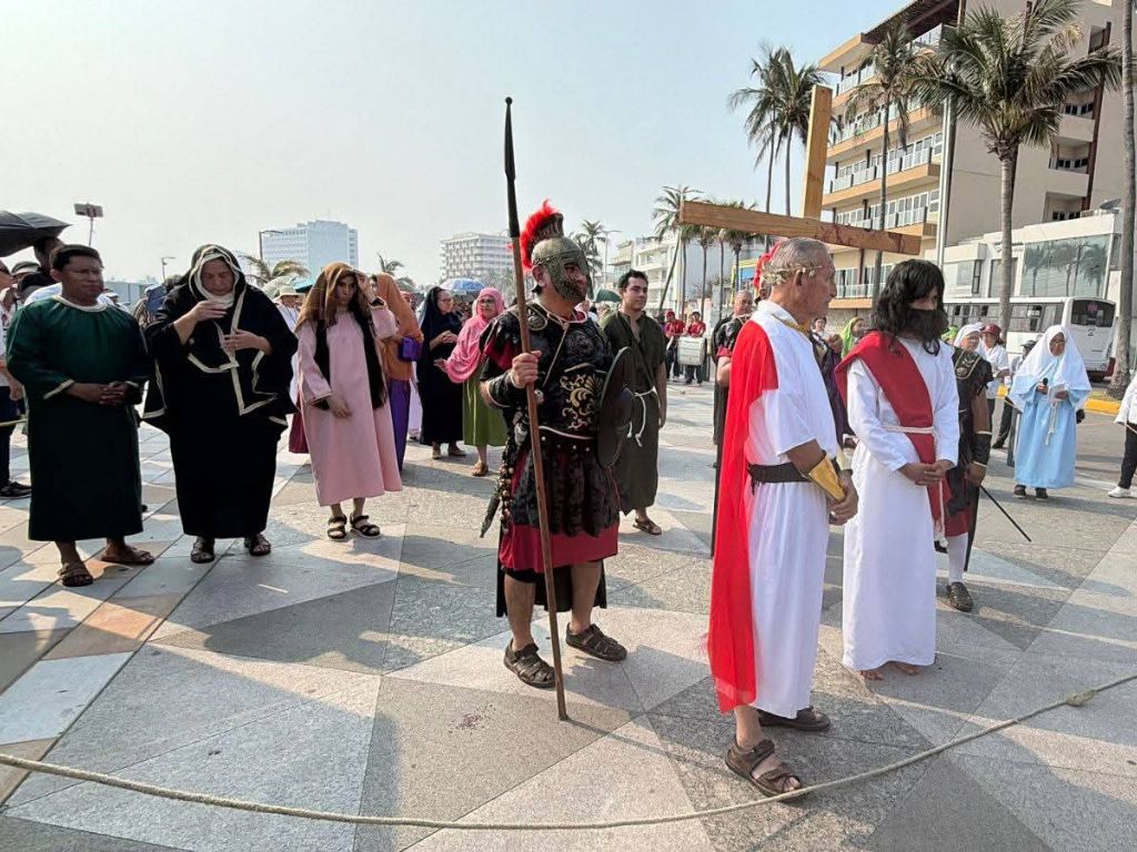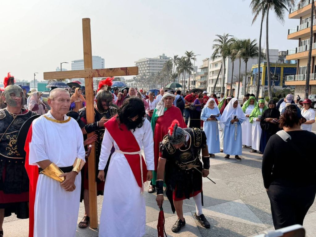 En Veracruz se realiza el viacrucis con representantes en vivo de la pasión y muerte de Jesús en el Viernes Santo.