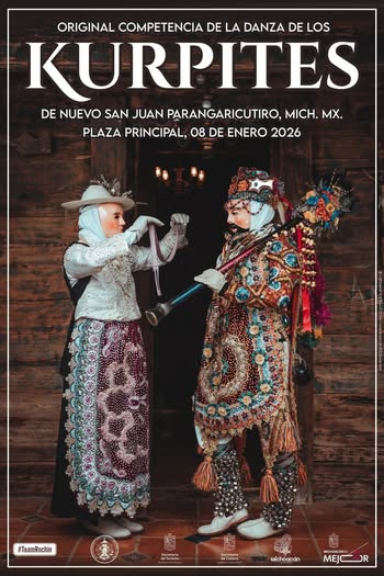 La fiesta de los Kúrpites en San Juan Nuevo Parangaricutiro, Michoacán, es una celebración tradicional purépecha que se celebra del 6 al 9 de enero, centrada en una intensa competencia entre los barrios de San Miguel y San Mateo, con danzas coloridas, música de orquestas y elaborados trajes artesanales, en honor a su historia y fe tras la erupción del volcán Paricutín.