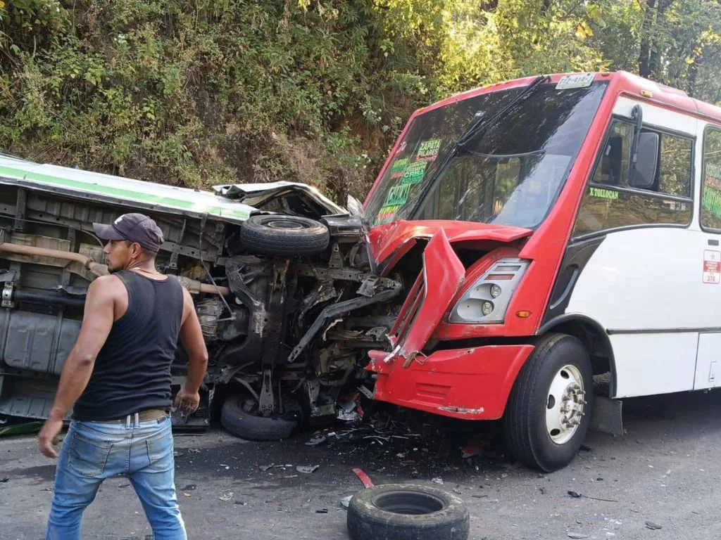 Al menos 20 personas resultaron lesionadas y se registraron daños materiales de consideración tras el choque frontal entre un autobús y una camioneta tipo Urvan procedente de Huixquilucan, a la altura de la zona conocida como El Ahuehuete, en Ocuilan, Estado de México.
