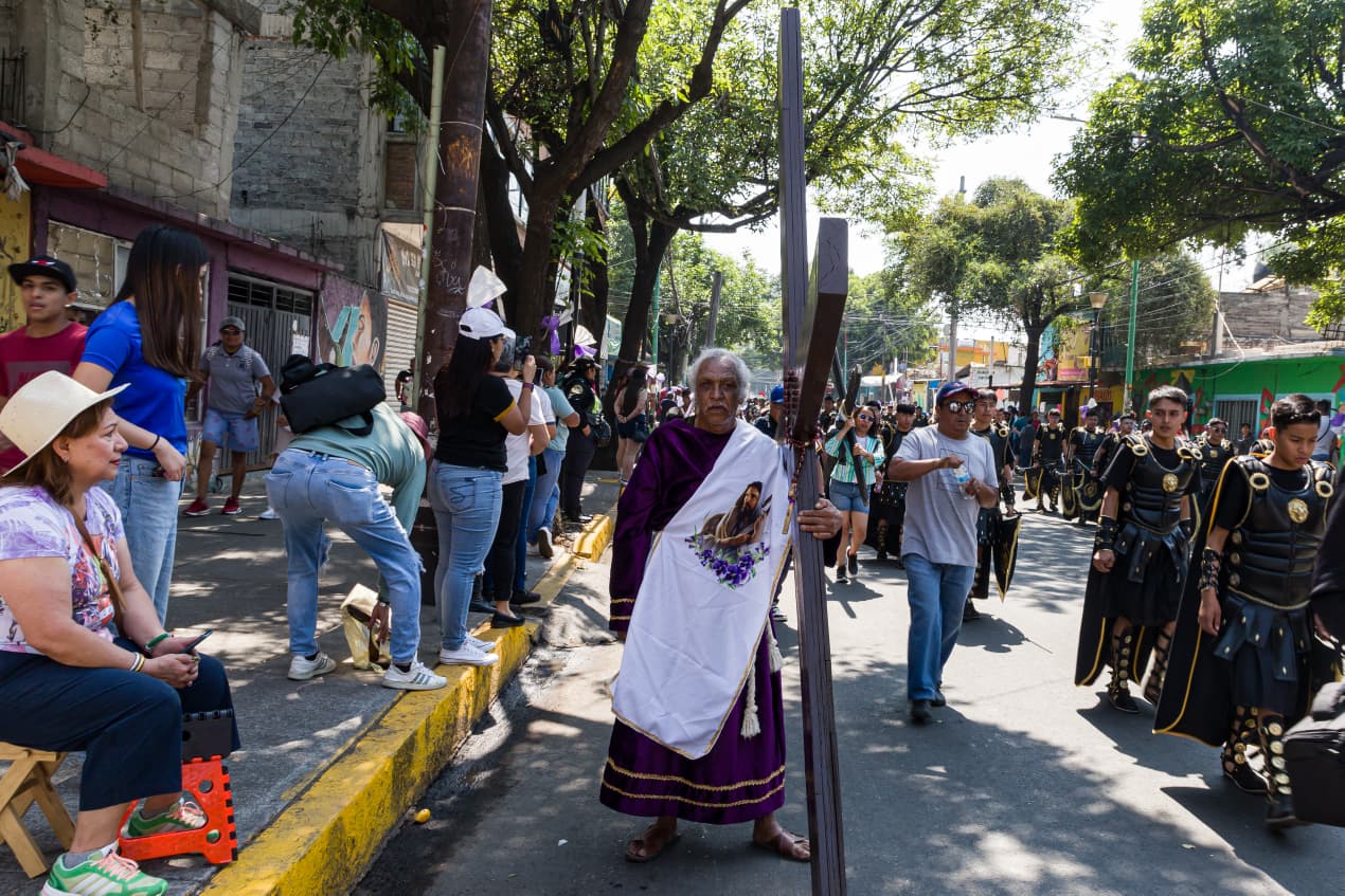Hoy, inició la edición 183 del tradicional Viacrucis en Iztapalapa, una de las representaciones de la Pasión de Cristo más emblemáticas de México. Desde las primeras horas de la mañana, miles de nazarenos vestidos de morado y con coronas de espinas comenzaron su recorrido por los ocho barrios originarios (San Lucas, San Pablo, San Pedro, San José, Asunción, Santa Bárbara, San Ignacio y San Miguel), cargando sobre sus hombros pesadas cruces de madera como parte de su manda o promesa de fe. El ambiente se llenó de devoción, con el eco de las cruces arrastrándose por las calles y una multitud de fieles acompañando la procesión.
