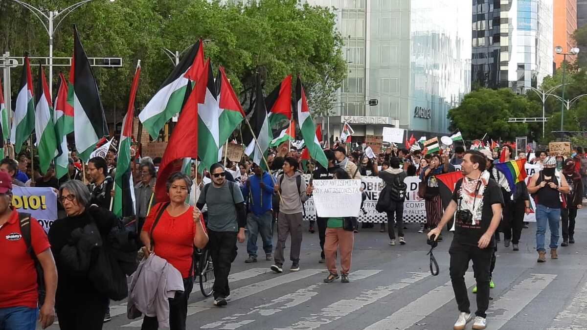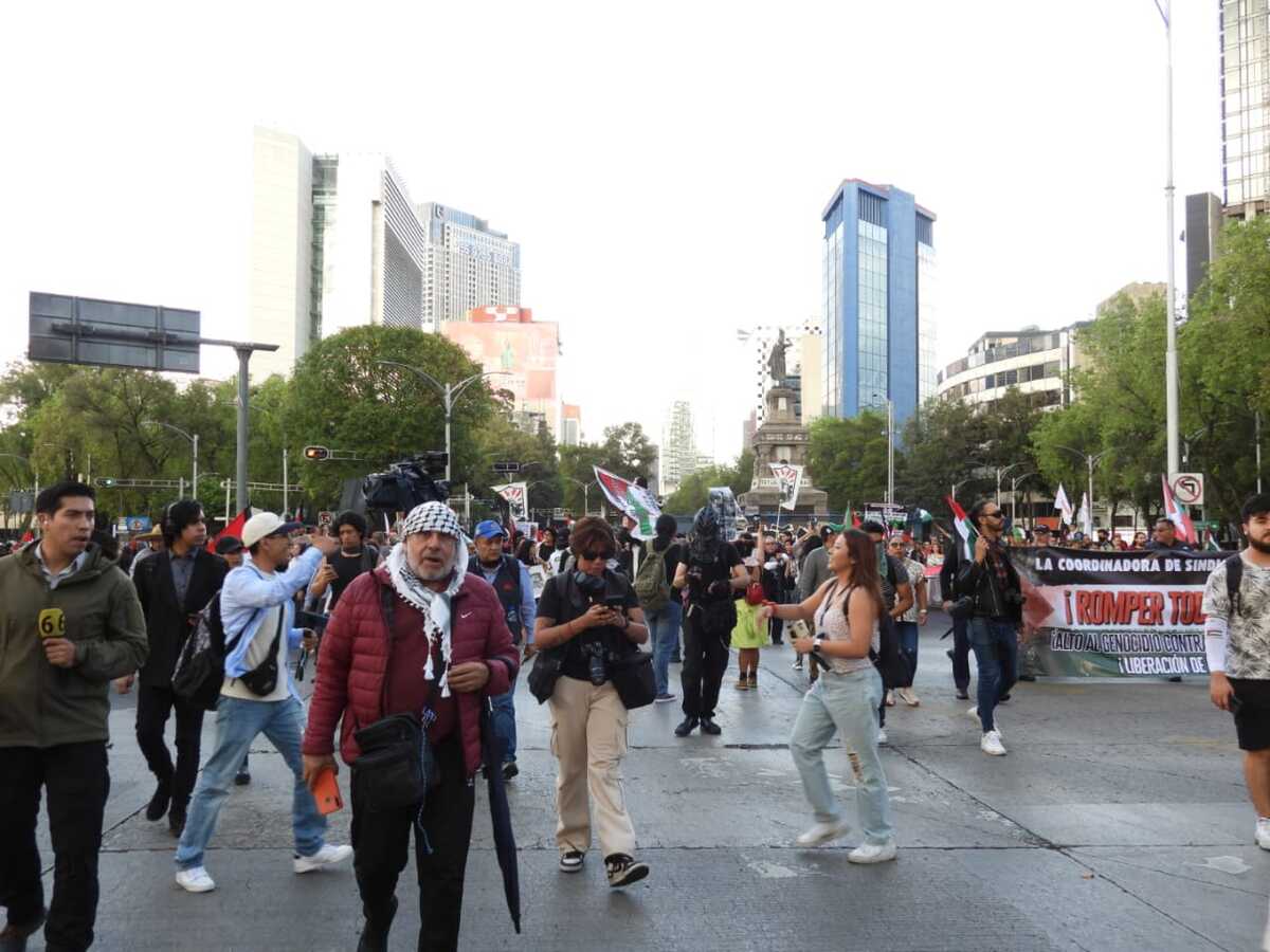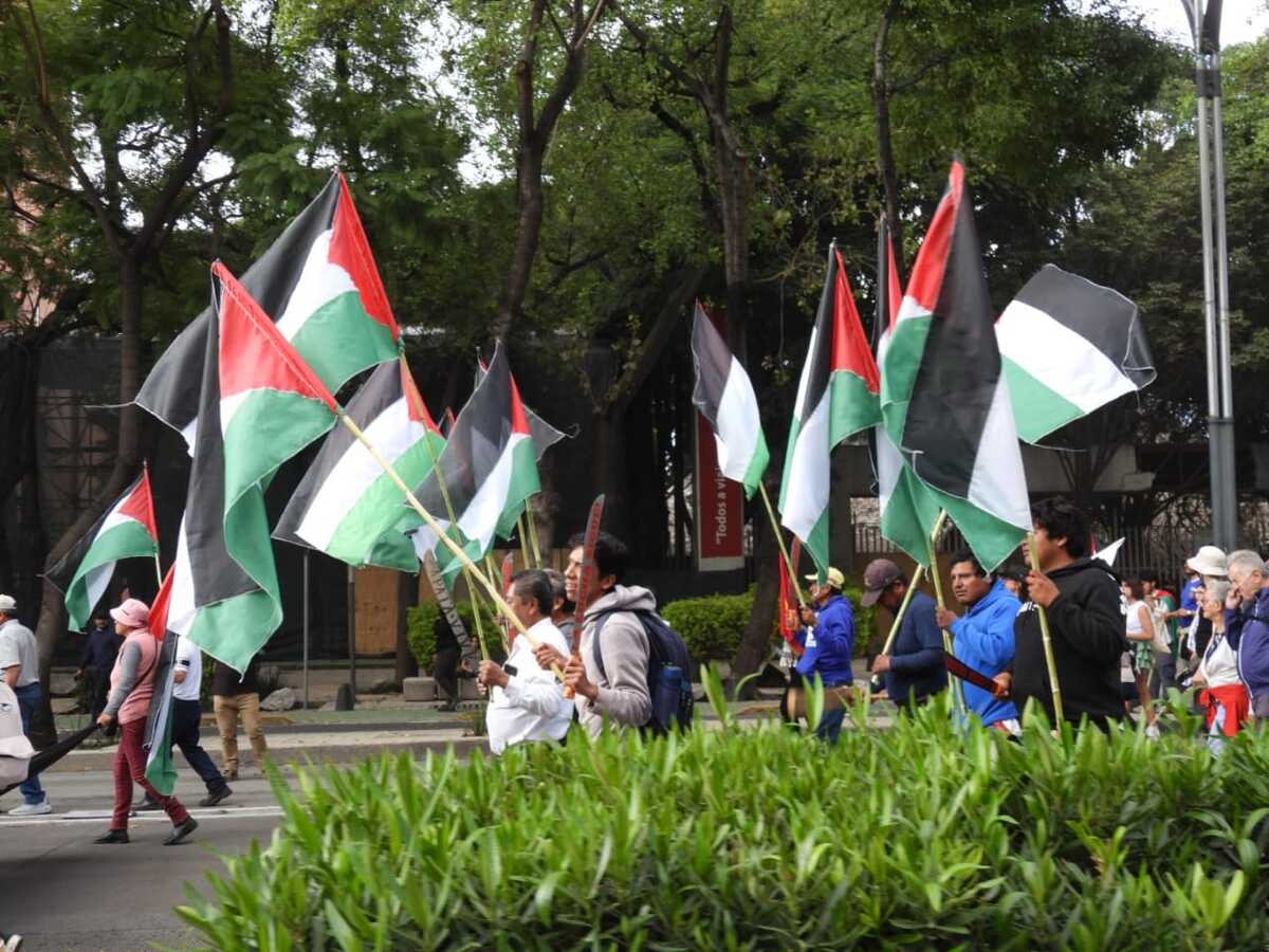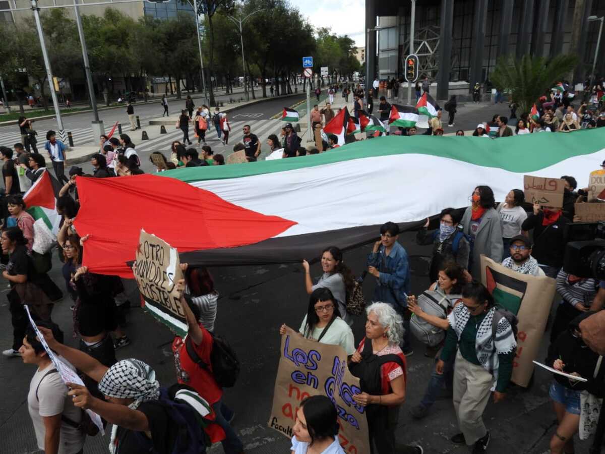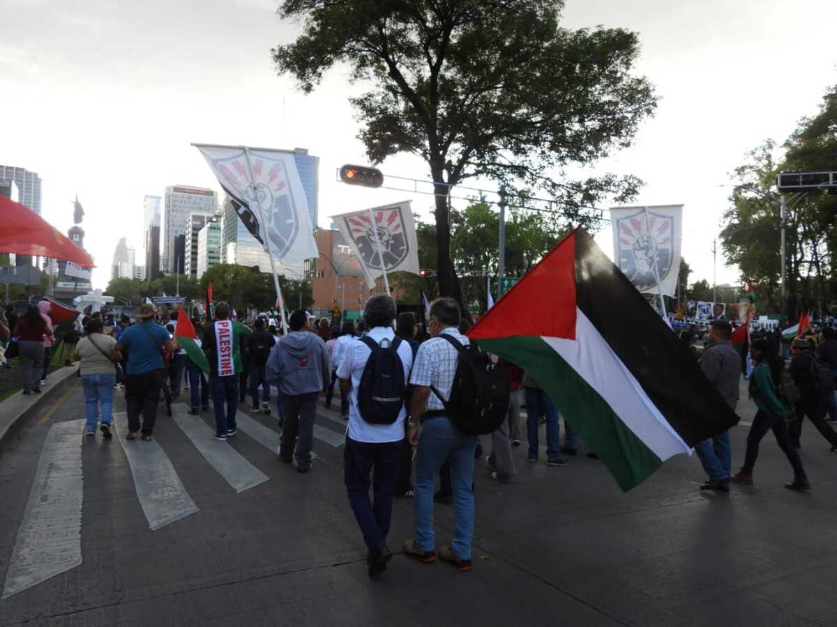 Este martes se realizó la marcha en apoyo al pueblo palestino en la Ciudad de México, donde decenas de manifestantes portaron banderas y mantas con mensajes donde exigieron el cese del genocidio en Gaza y un alto al fuego inmediato.