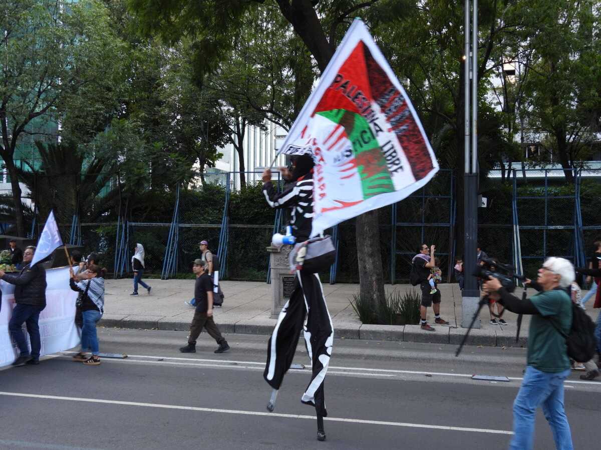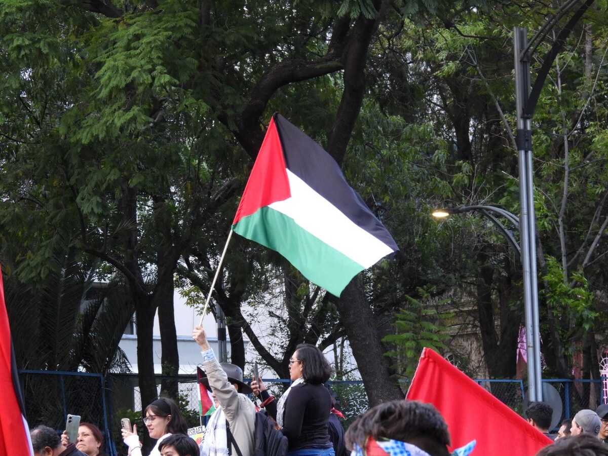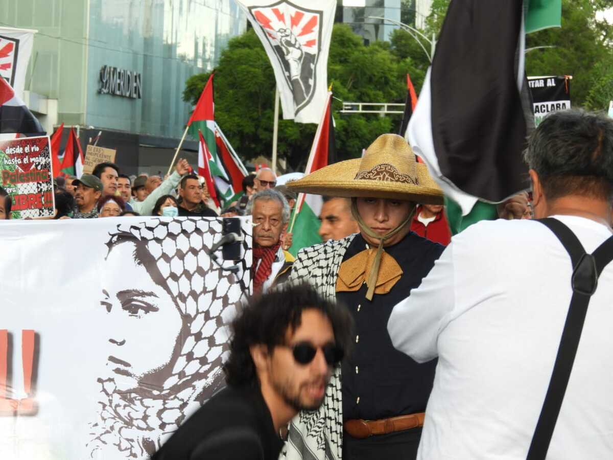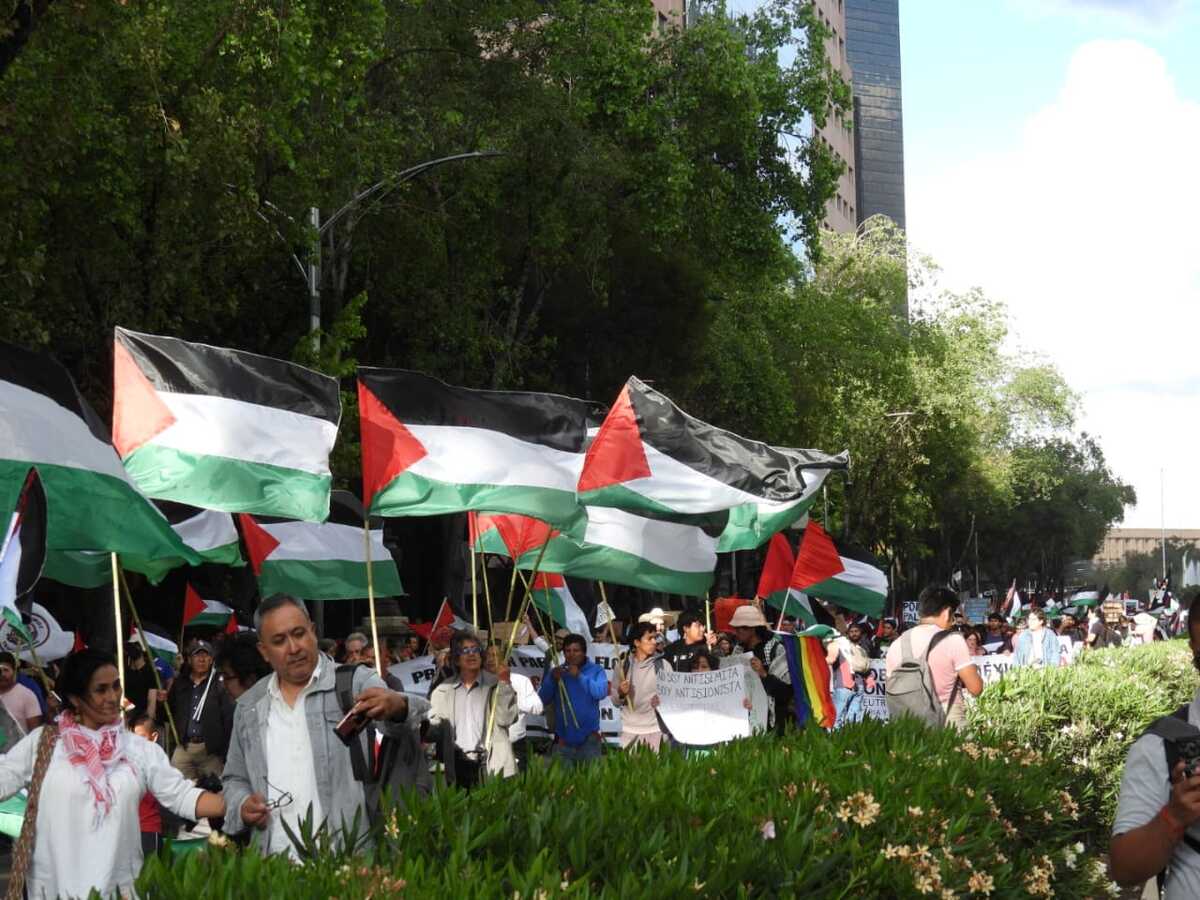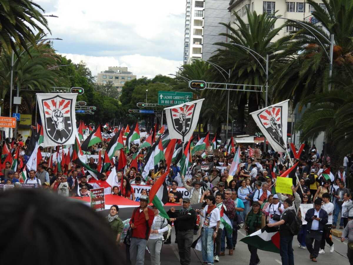 Este martes se realizó la marcha en apoyo al pueblo palestino en la Ciudad de México, donde decenas de manifestantes portaron banderas y mantas con mensajes donde exigieron el cese del genocidio en Gaza y un alto al fuego inmediato.
