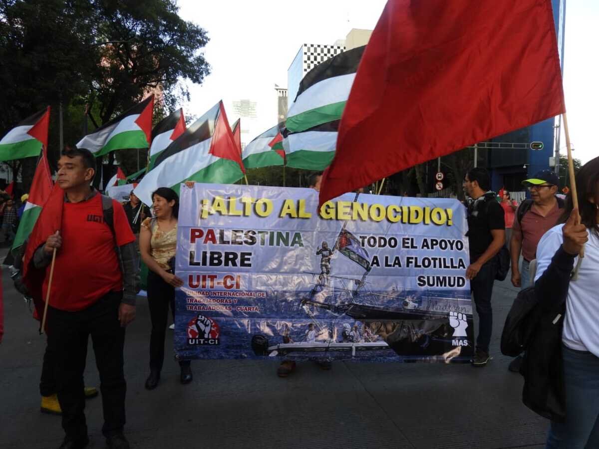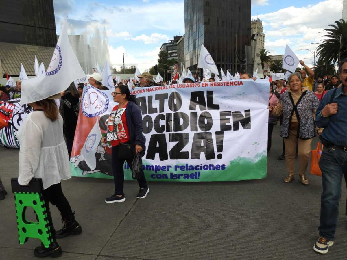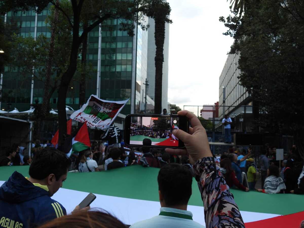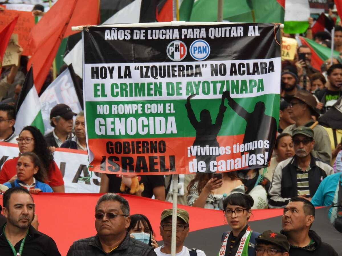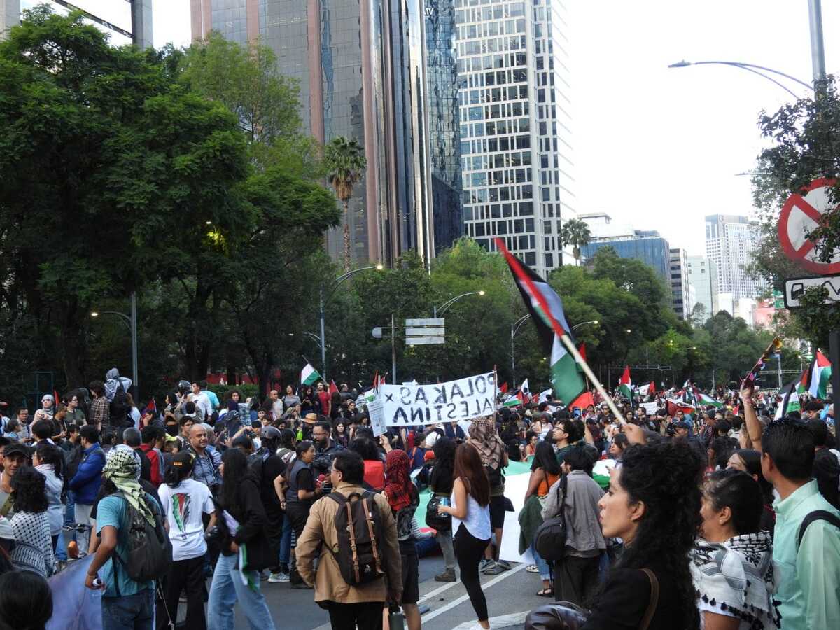 Este martes se realizó la marcha en apoyo al pueblo palestino en la Ciudad de México, donde decenas de manifestantes portaron banderas y mantas con mensajes donde exigieron el cese del genocidio en Gaza y un alto al fuego inmediato.