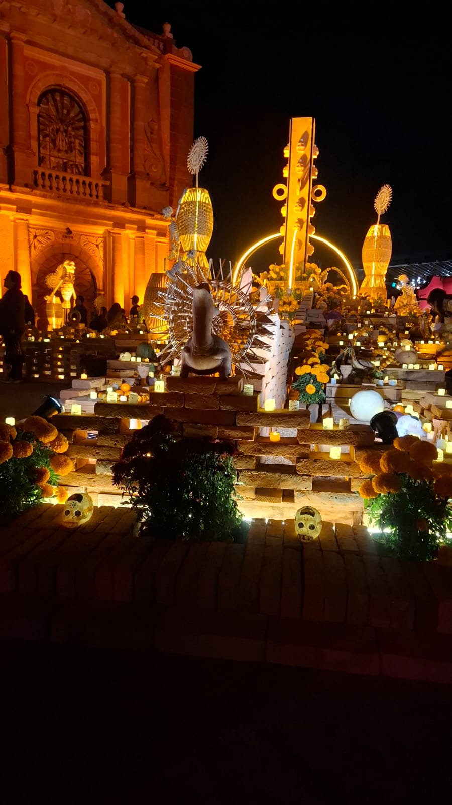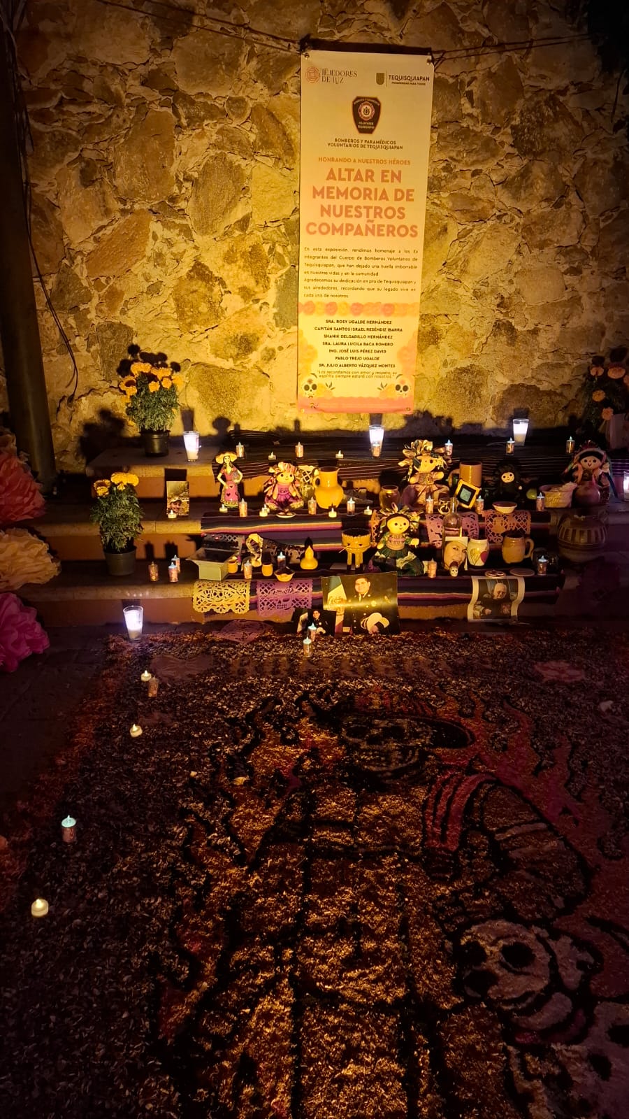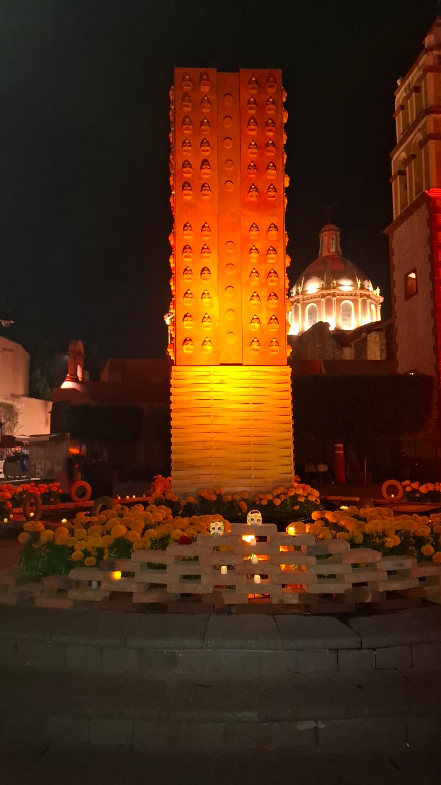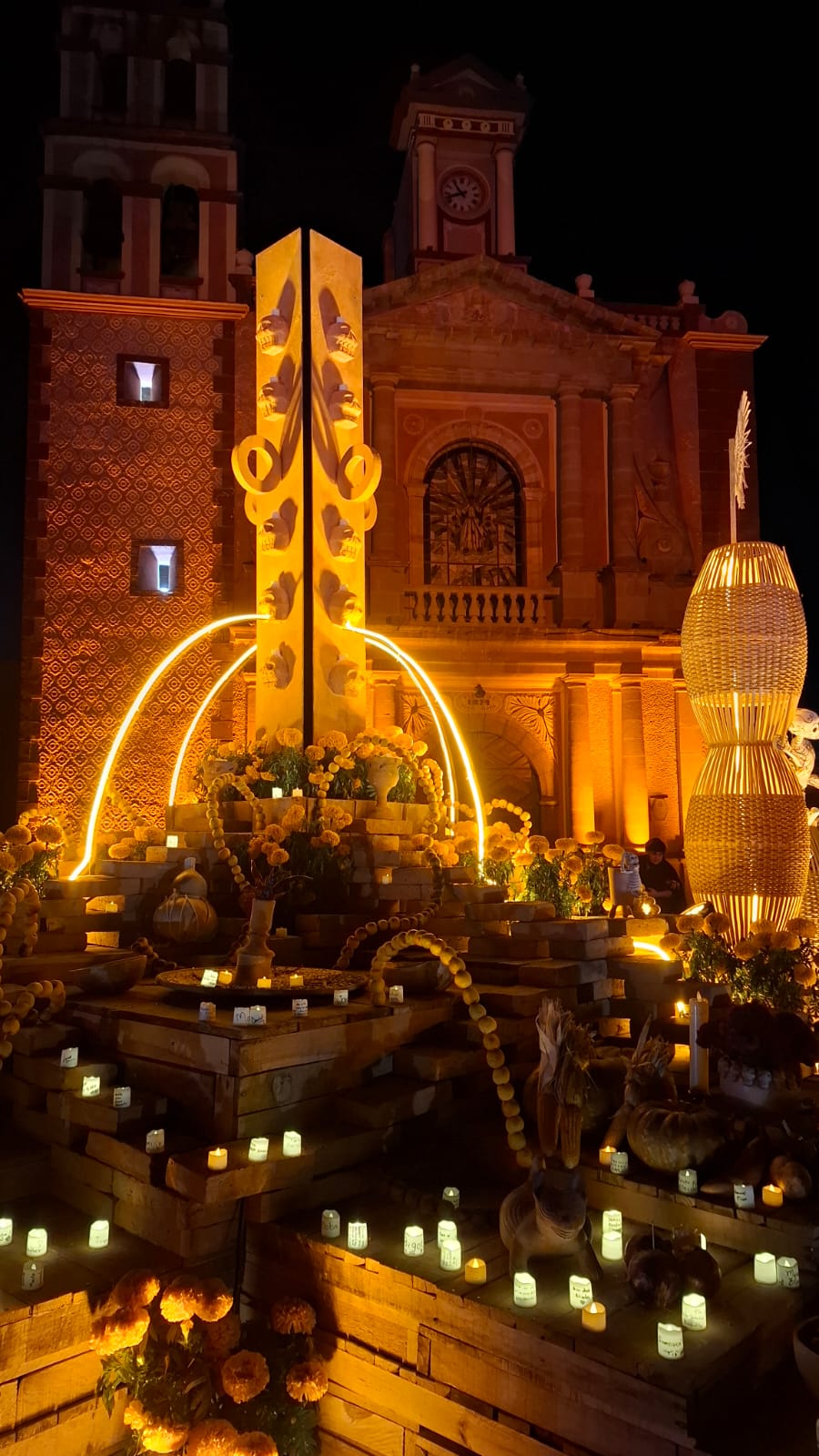 En la Plaza Miguel Hidalgo los artesanos instalaron un Altar Monumental, además de un pabellón donde se ofrecen productos de los viñedos de la región, mientras que en sus calles cercanas colocaron tapetes alusivos a las festividades del 1 y 2 de noviembre.