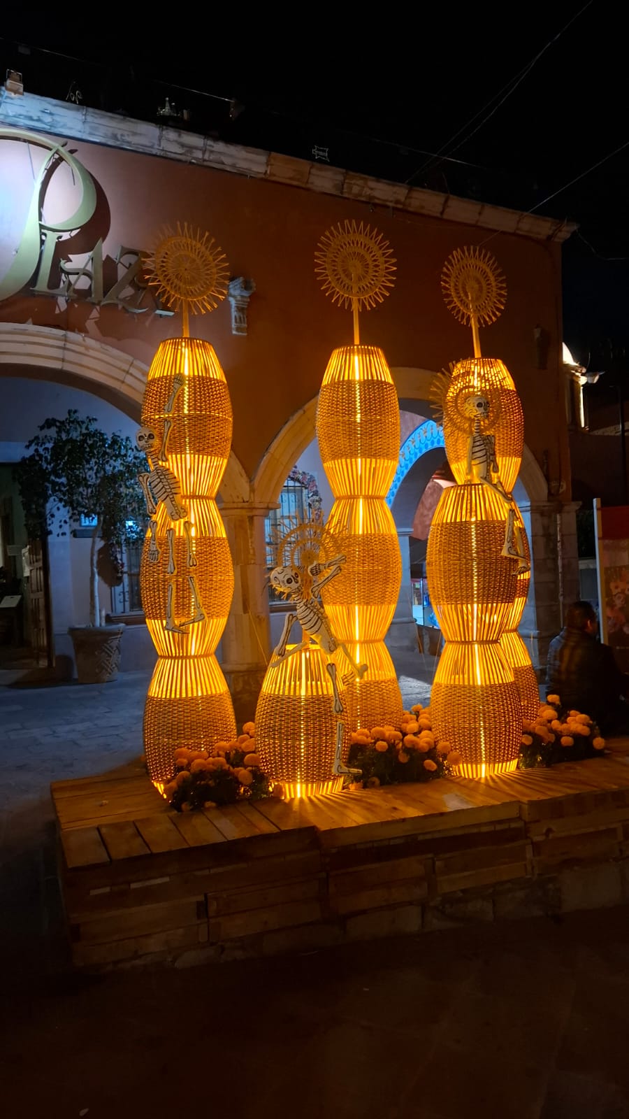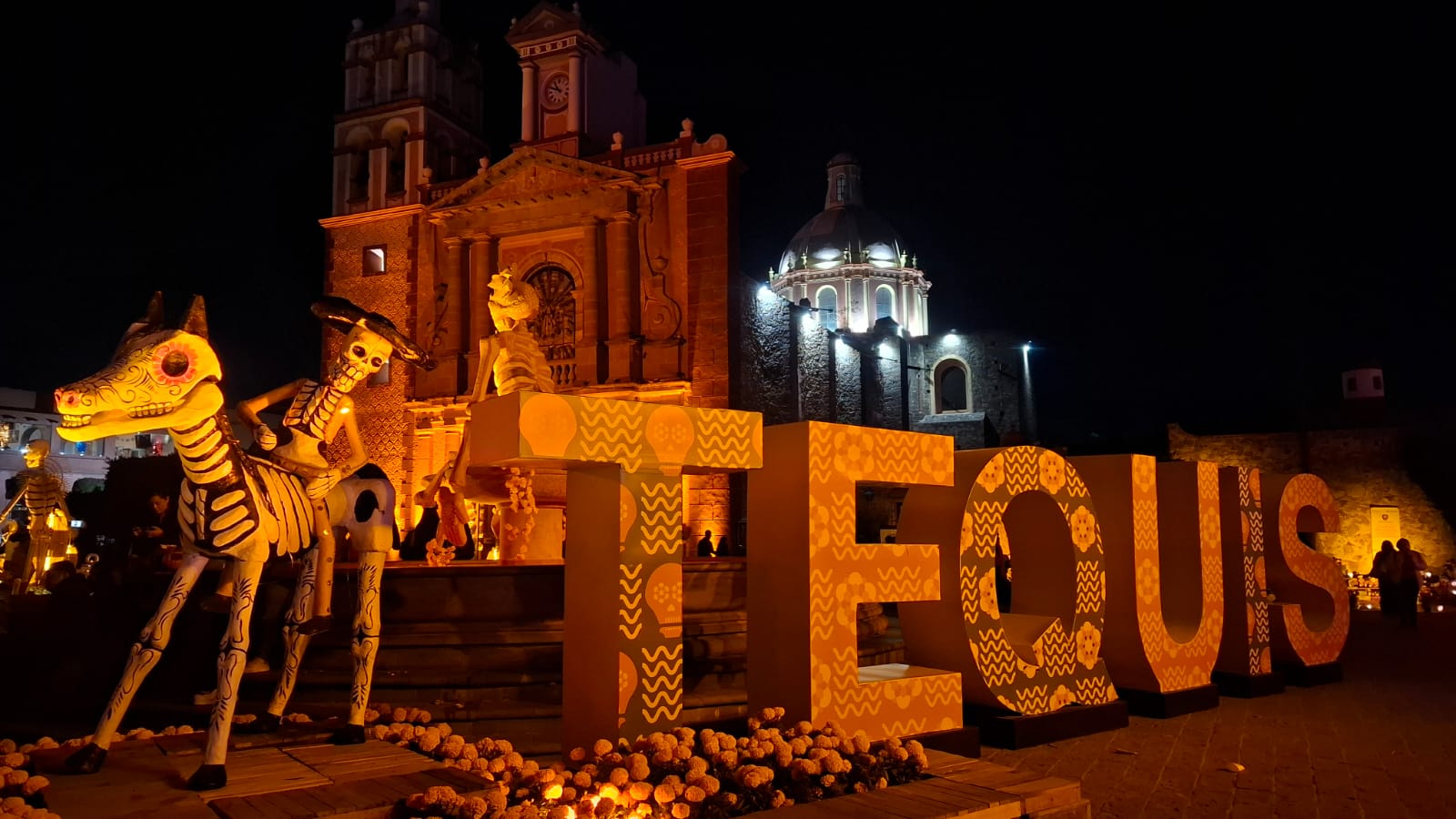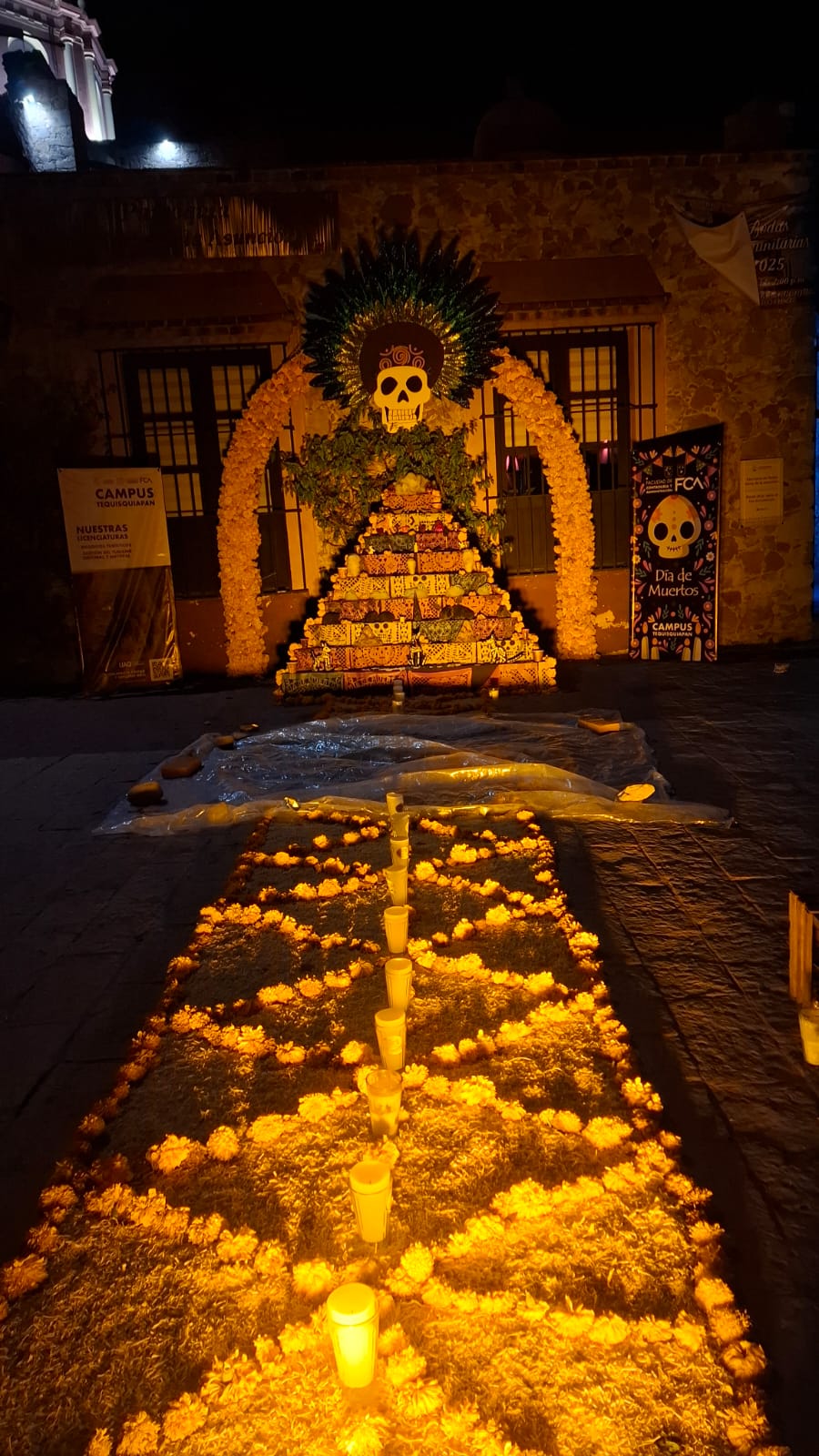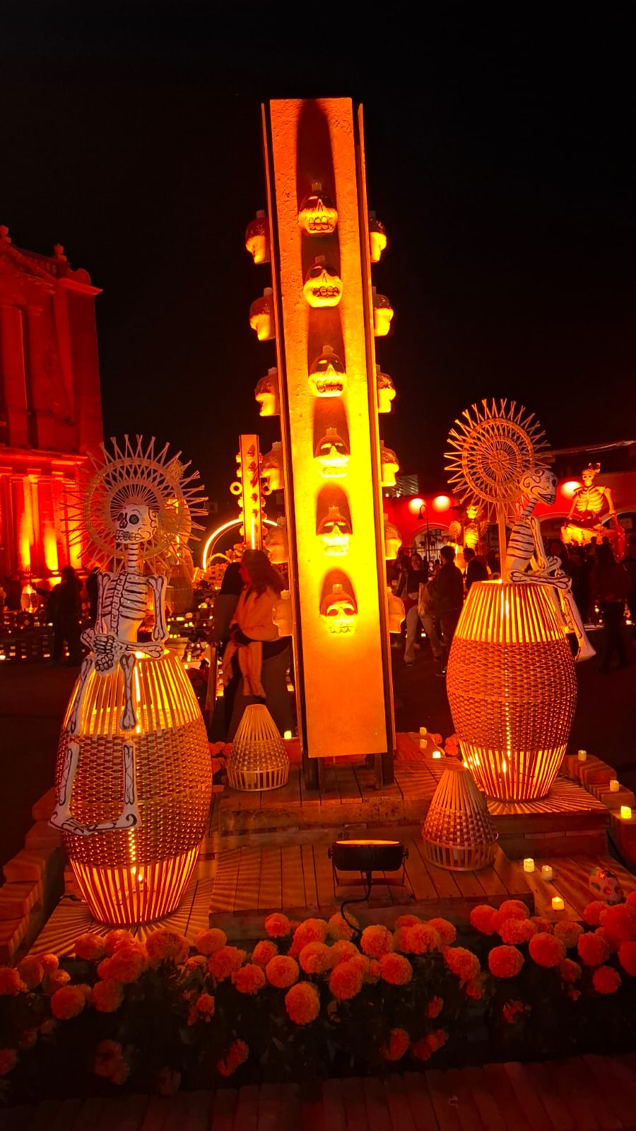 En la Plaza Miguel Hidalgo los artesanos instalaron un Altar Monumental, además de un pabellón donde se ofrecen productos de los viñedos de la región, mientras que en sus calles cercanas colocaron tapetes alusivos a las festividades del 1 y 2 de noviembre.