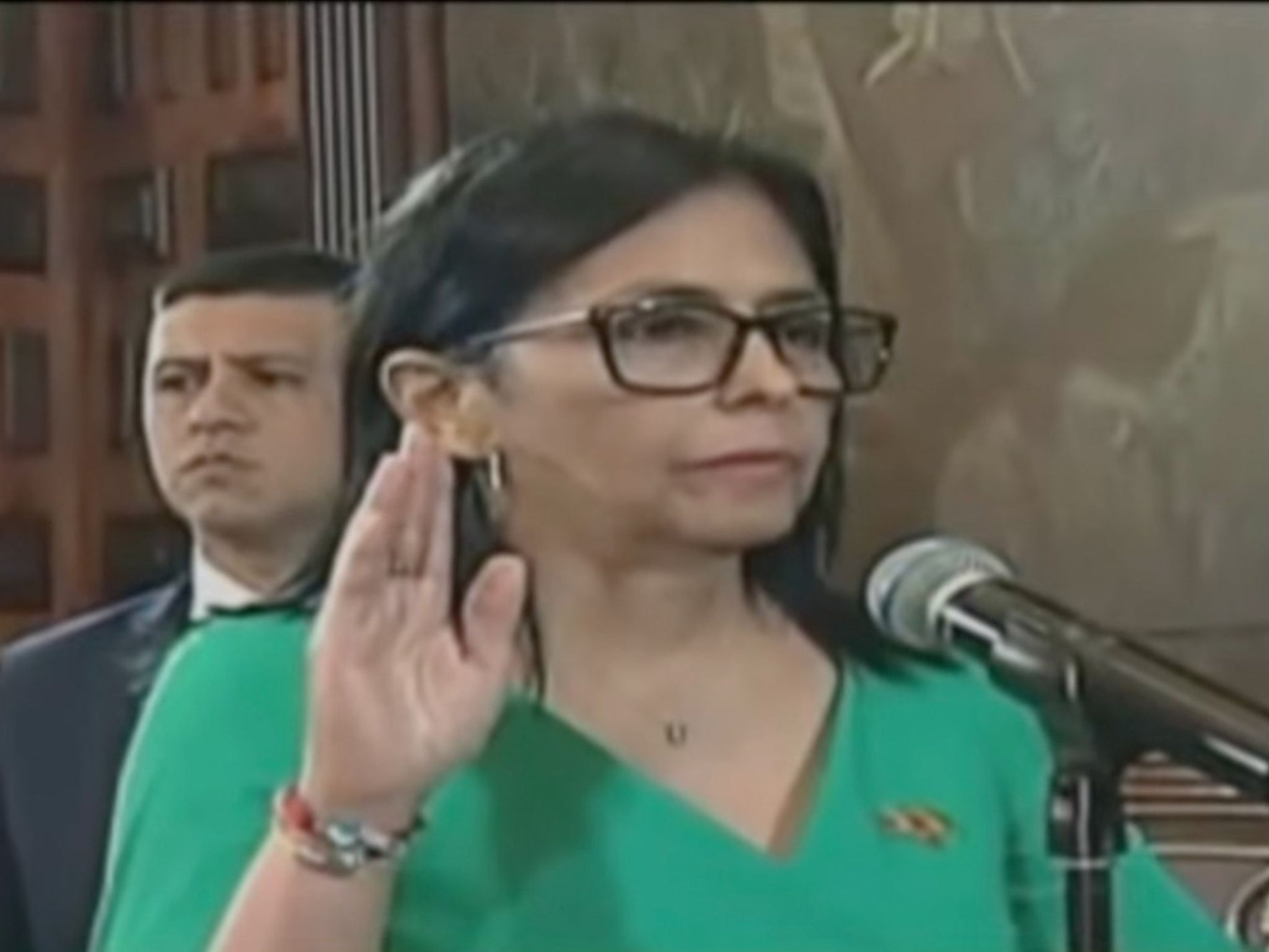 La Asamblea Nacional (AN) juramentó a Delcy Eloína Rodríguez Gómez como presidenta encargada de la República Bolivariana de Venezuela, en el salón Tríptico del Palacio Federal Legislativo, este lunes. pic.twitter.com/Dp0QA9iwVH