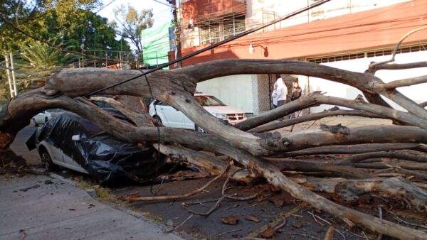 Las alcaldías capitalinas reportan accciones de supervisión en las calles y edificios, y en Benito Juárez reportan caída de árbol en Monrovia y Zapata, en la colonia Portales.