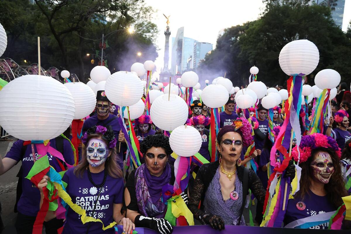 Este domingo, previo a las celebraciones del Día de Muertos, en la Mega Procesión de las Catrinas 2025, vivos celebraron a los difuntos con coloridos vestuarios, maquillajes creativos, tradición y actualidad, con música y carros alegóricos.