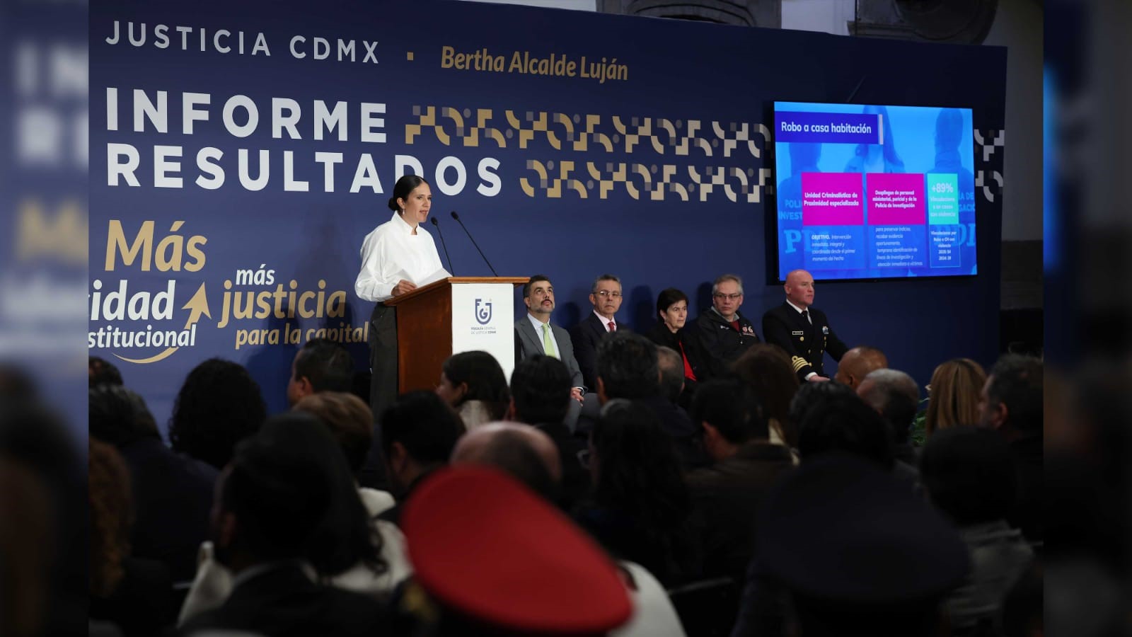 Al presentar el Primer Informe de Resultados, Más capacidad institucional, más justicia para la capital, la titular de la FGJCDMX, Bertha Alcalde Luján expuso los avances sustantivos en: