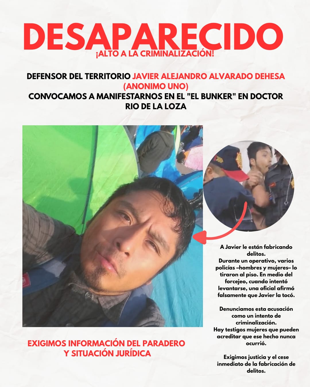 Sin embargo, señalan que Javier esta desparecido porque no tienen ninguna información de su situación jurídica, ni de donde lo tienen detenido.