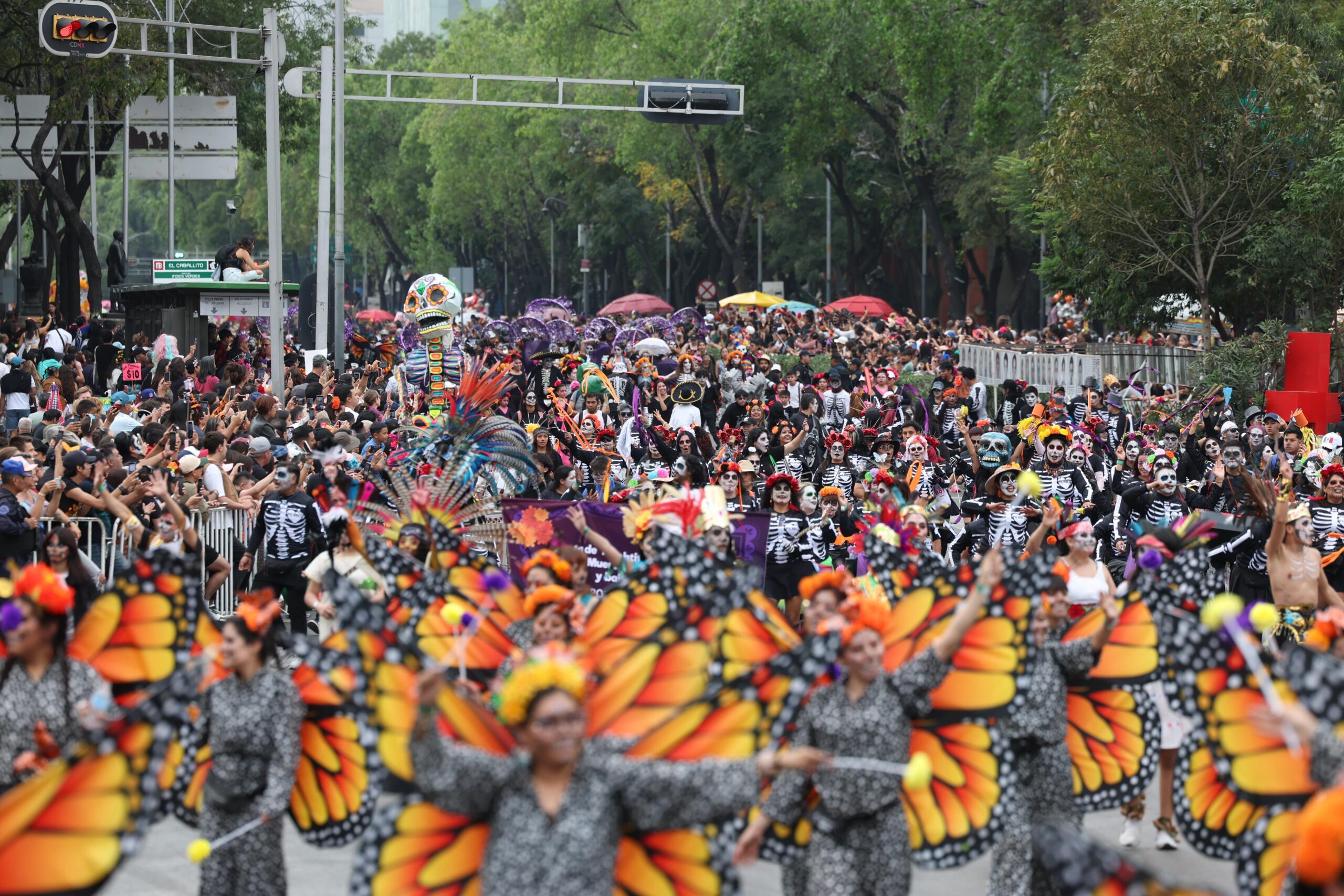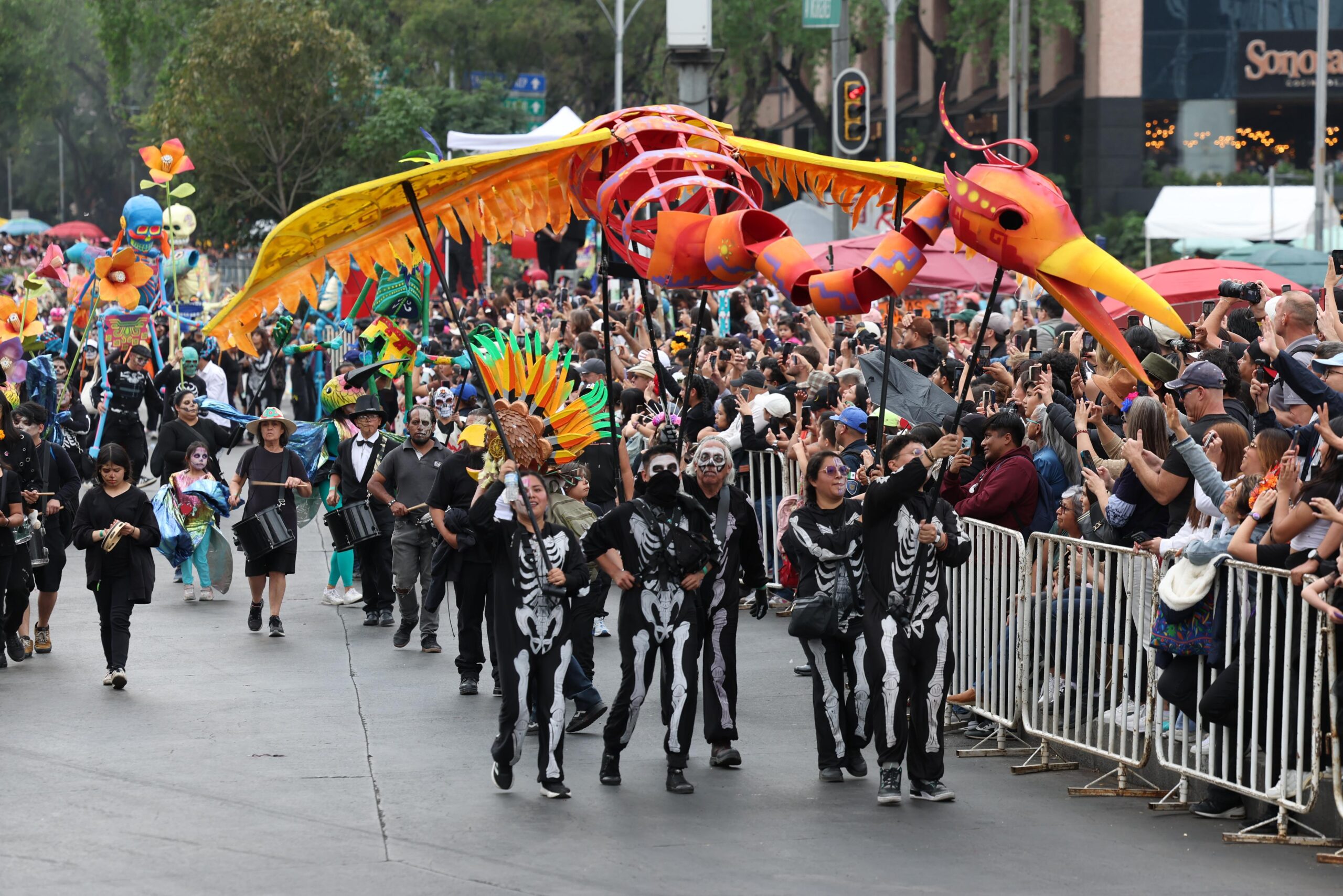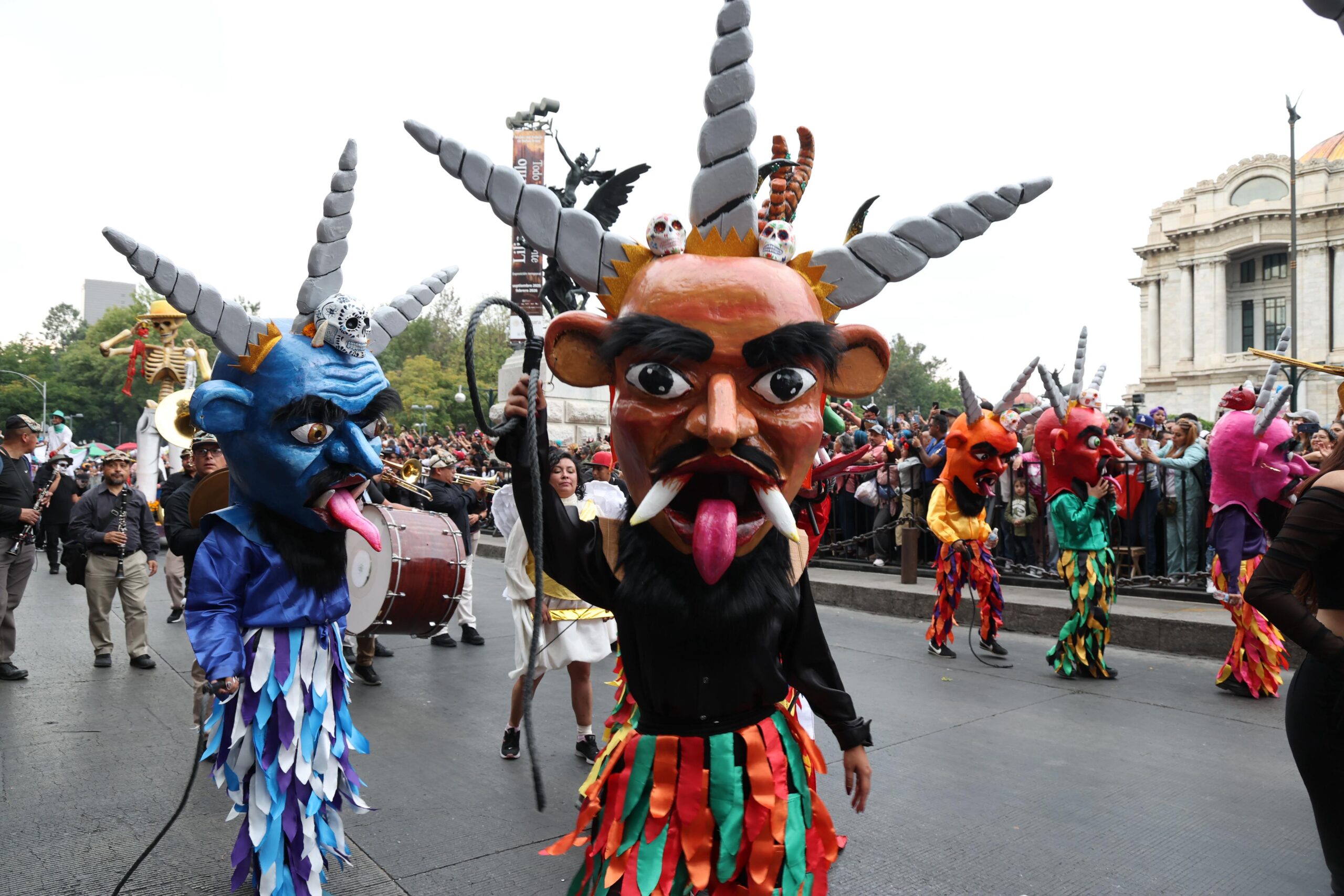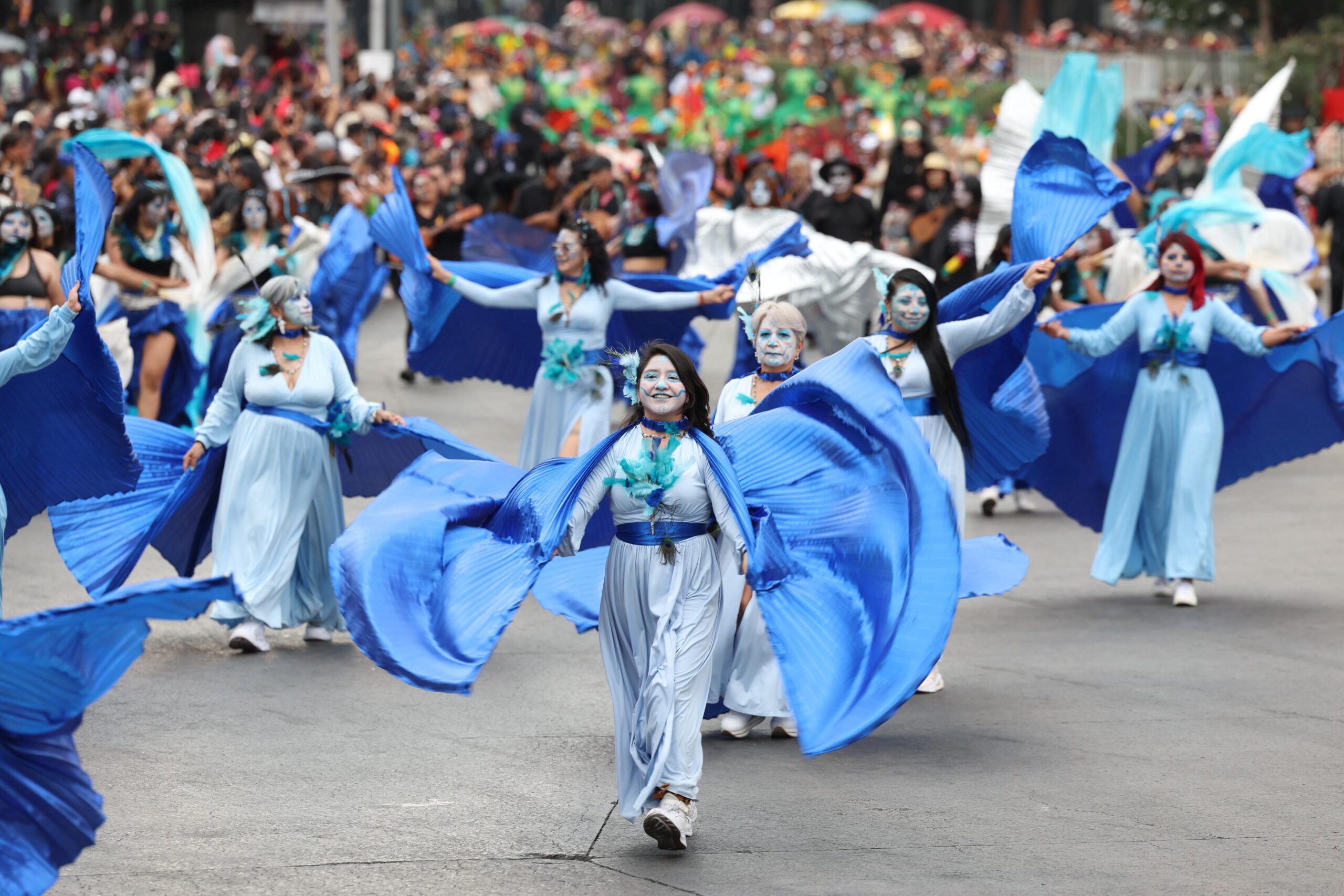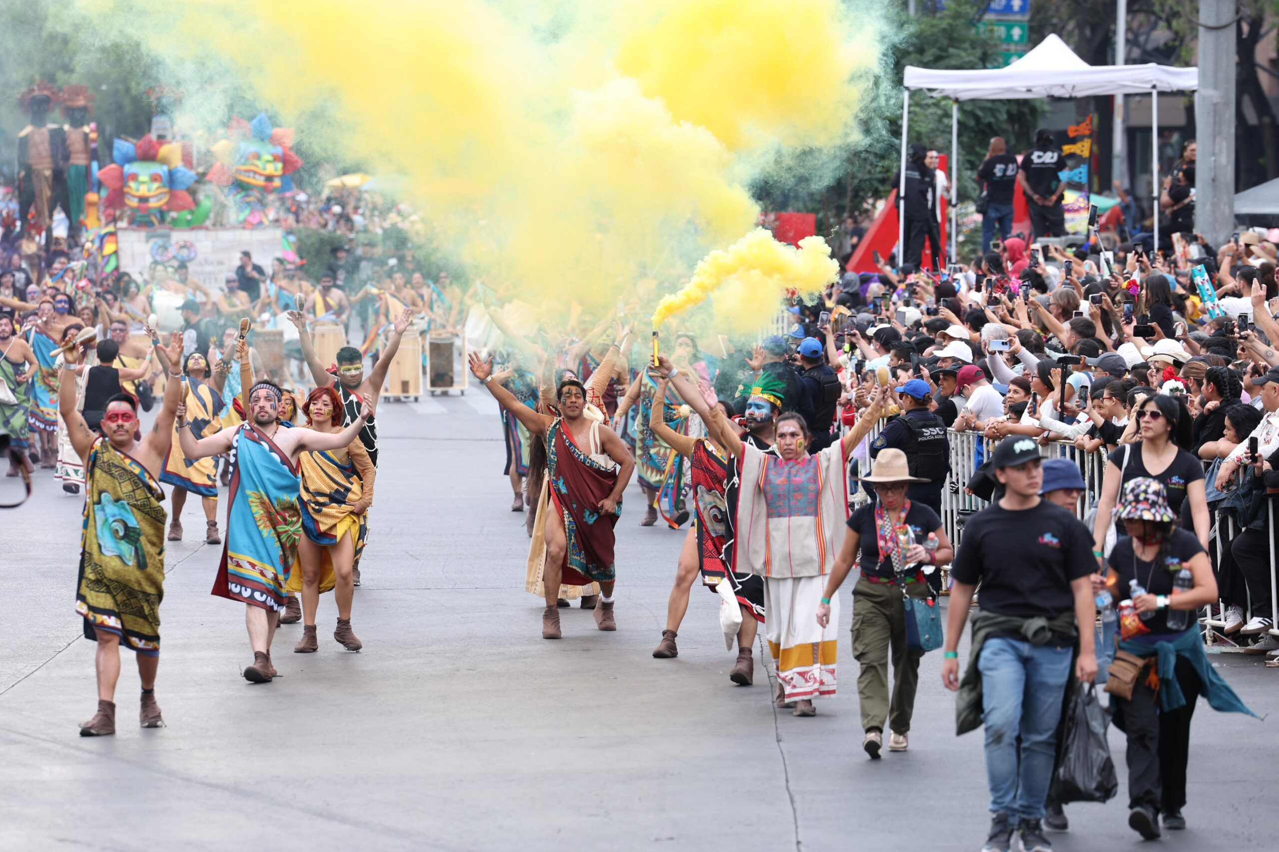 A las 14:00 horas, el desfile arrancó desde la Puerta de los Leones del Bosque de Chapultepec, avanzando por Avenida Juárez, Eje Central y Calle 5 de Mayo, hasta culminar en el Zócalo capitalino, donde se instaló una ofrenda monumental con más de 100 mil flores de cempasúchil cultivadas en las chinampas de Xochimilco y Tláhuac.