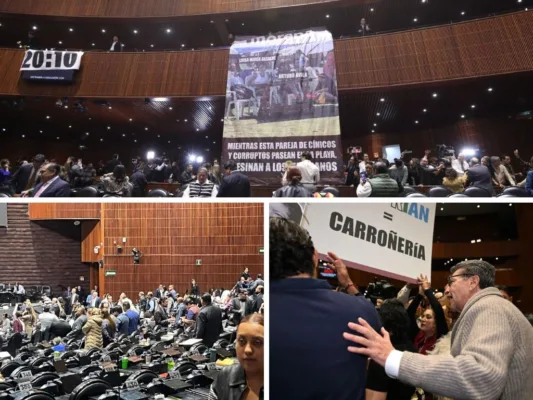 La pancartas con la imagen de la lideresa morenista con la frase : “Morena mató a Manzo” , desató una mayor inconformidad en las curules guindas, por lo que fue decretado un receso breve para calmar los ánimos.