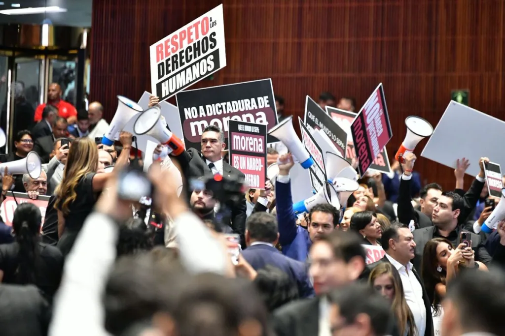 Con pancartas, sirenas y megáfonos, legisladores del Partido Revolucionario Institucional (PRI) interrumpieron por casi 20 minutos la sesión ordinaria en la Cámara de Diputados de este 1 de septiembre, en el marco del Primer Informe de Gobierno de la presidenta Claudia Sheinbaum.
