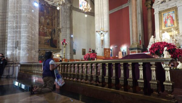 En la entrada de la Basílica, don Melitón reiteró que a pesar de que llevan seis reuniones con la presidenta Claudia Sheinbaum, no hay avances en las investigaciones para dar con el paradero de los estudiantes desaparecidos.