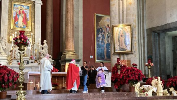 En la misa que ofreció en la antigua Basílica de Guadalupe, el sacerdote católico expresó su admiración por la incansable lucha de los padres y madres de los 43 jóvenes, en el marco de los 135 meses de la desaparición de los estudiantes normalistas.