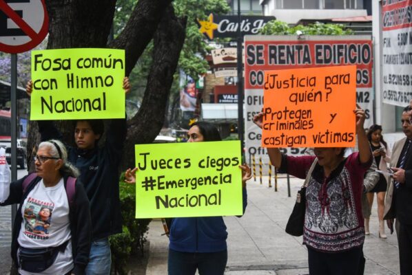 Con mantas y pancartas que decían “Jueces Ciegos #EmergenciaNacional”, “Poder Judicial no colabora” y “Basta de complicidad del PJF”, los protestantes exigieron a los jueces federales mayor sensibilidad y que autoricen diligencias de investigación que, según denunciaron, han sido negadas bajo el argumento de proteger la privacidad de terceros.