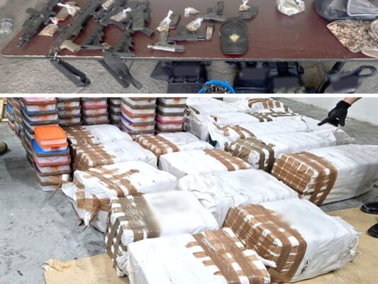 También se aseguraron municiones y un automóvil, además de quedar bajo resguardo el inmueble donde se localizó la sustancia ilícita, el cual fue puesto a disposición de las autoridades correspondientes para las investigaciones de ley.