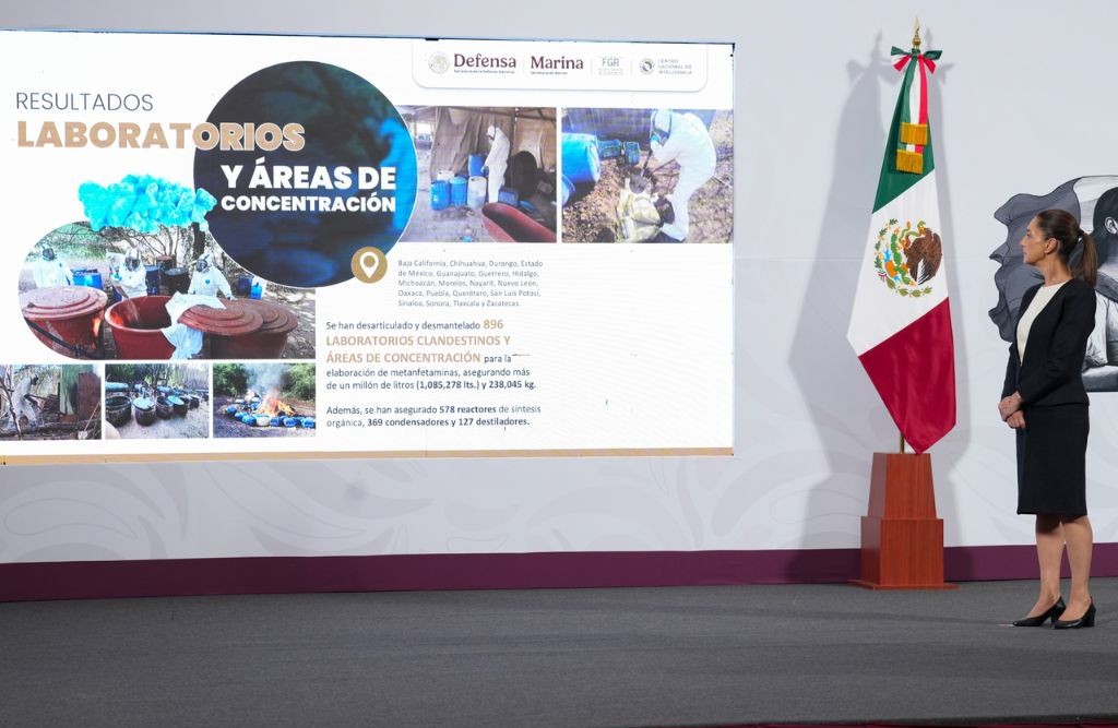El informe también detalla las acciones llevadas a cabo como parte de la estrategia de Cero Impunidad, incluyendo la desarticulación de 896 laboratorios y áreas de concentración para la elaboración de metanfetaminas, el aseguramiento de drogas, armas de fuego y la detención de personas involucradas en actividades delictivas.