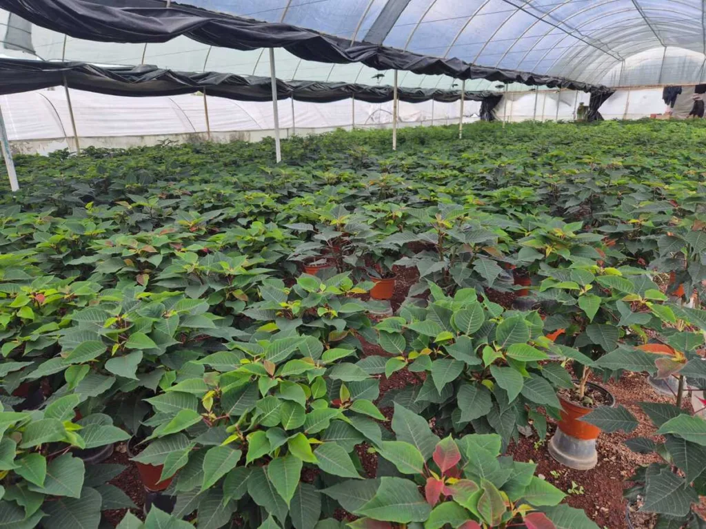 Flor de Nochebuena en viveros de Xochimilco. AMEXI/Foto: Cortesía