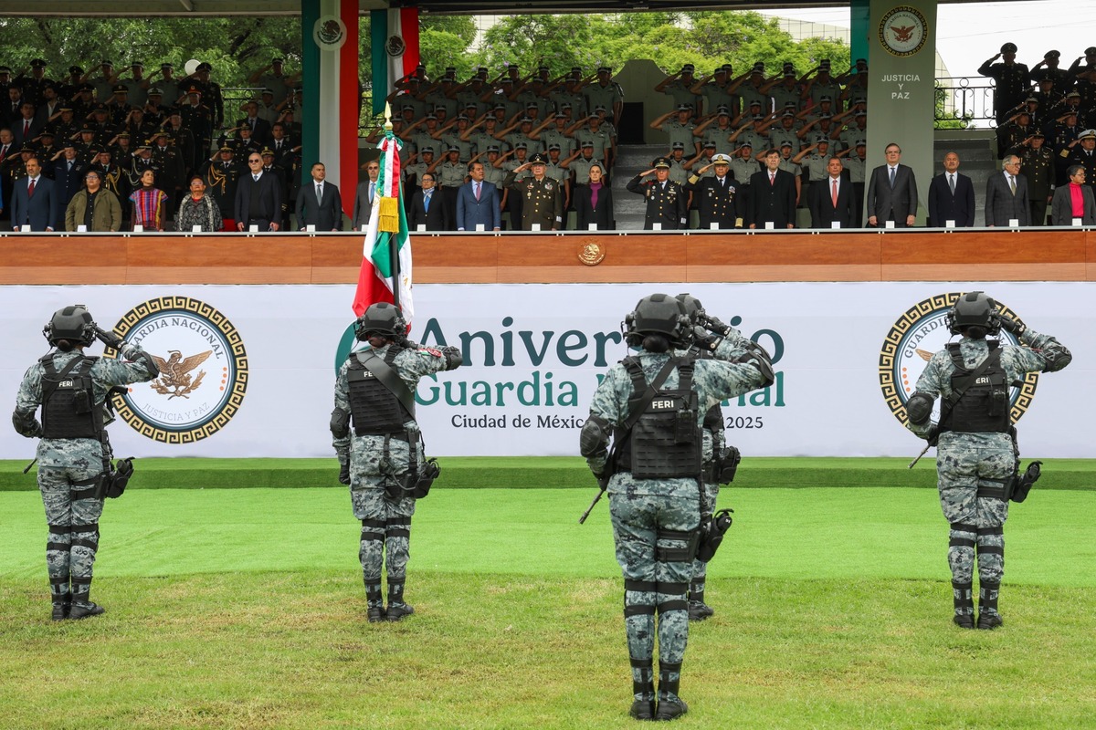 En ceremonia en Campo Marte, subrayó que la GN es clave en la estrategia de seguridad nacional, al contribuir a la reducción del 25% en los homicidios dolosos desde el inicio de su administración.