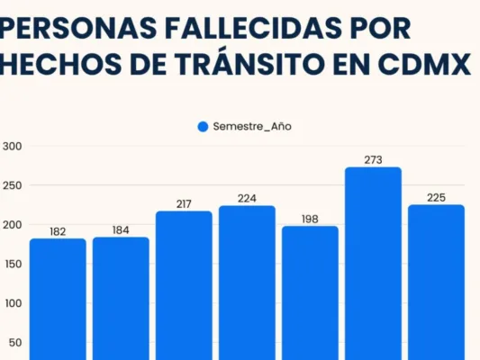 En el primer semestre de 2025,  hubo 325 investigaciones y 225 fallecidos, siendo los motociclistas y conductores las mayores víctimas. Hoy en día, los accidentes viales son la quinta causa de muerte en México.
