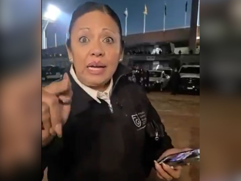 Durante la intervención, la mujer que aparece en el video —presuntamente familiar de los aficionados— reaccionó de forma agresiva y lanzó insultos discriminatorios contra una de las oficiales.