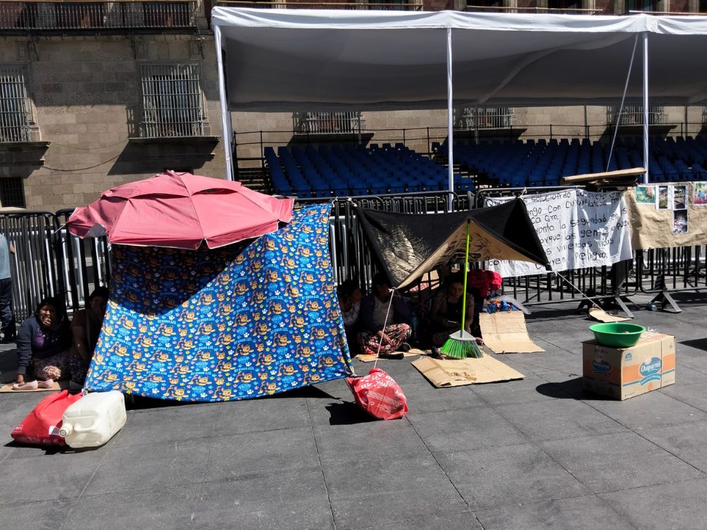 El plantón de pobladores de Cruz Fandango fue replegado este sábado de Palacio Nacional. AMEXI/ Foto Dante Gutiérrez.