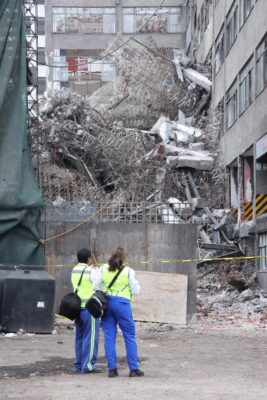 El inmueble colapsado era un antiguo edificio de telefonía que permanecía abandonado antes de iniciar su demolición. Reportes desde el sitio señalan que parte de la estructura continúa cediendo, lo que eleva el riesgo para los rescatistas y complica las maniobras de búsqueda.