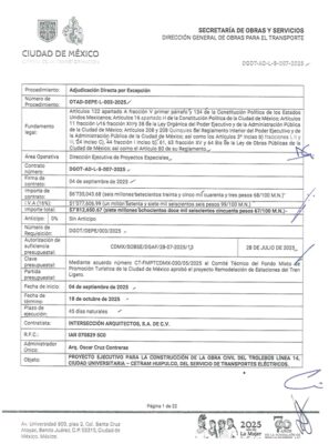 Previamente, el diseño de la obra fue encargado a la empresa Intersección Arquitectos, S.A. de C.V., mediante el contrato DGOT-AD-L-5-007-2025 firmado el 4 de septiembre de 2025, por un monto de 7,812,650.67 (IVA incluido) para la elaboración del «Proyecto Ejecutivo».