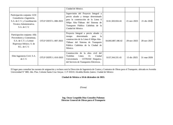 - Empresa ganadora: Elite Ingeniería Civil, S.A. de C.V.