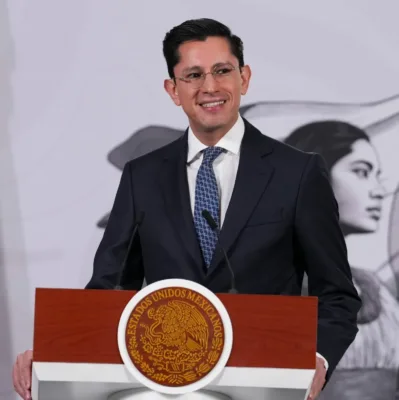 México, 18 de diciembre de 2025. Roberto Velasco Álvarez, encargado de Despacho de la SRE, en la mañanera. AMEXI/Foto: Gobierno de México