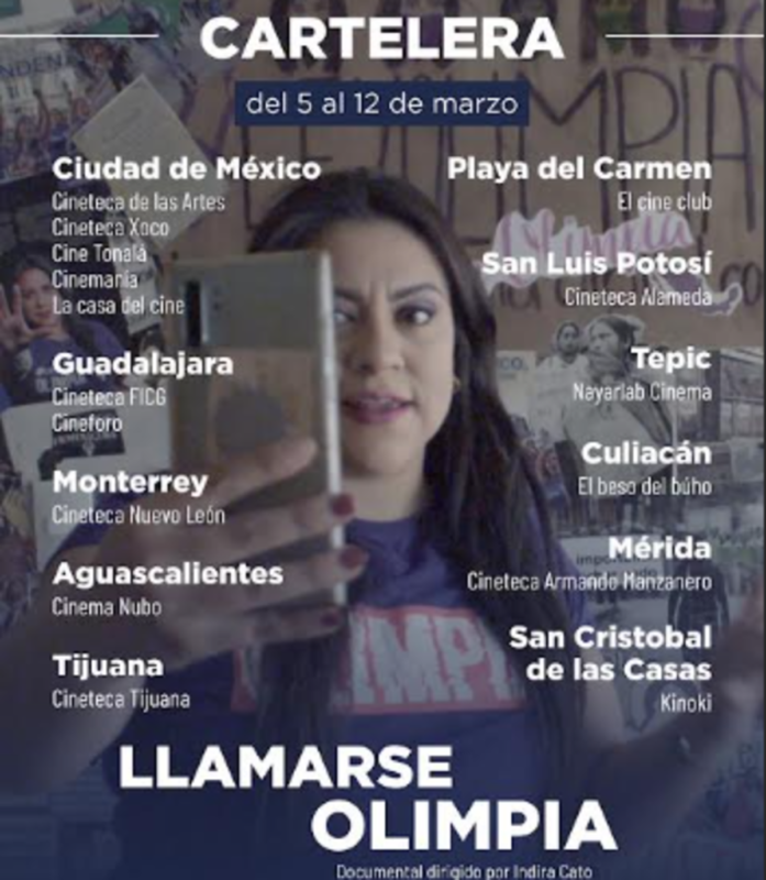 Lo anterior viene a colación, pues a partir del pasado 5 de marzo se viene estrenando Llamarse Olimpia, documental y ópera prima de Indira Cato (Ensenada, Baja Cal., 1991), como anunció la periodista Nadia Virgilio: